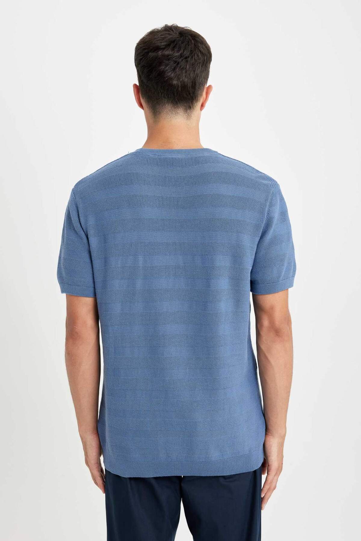 خرید اینترنتی تی شرت بافتنی آستین کوتاه نخی یقه رگولار با تناسب استاندارد D3580AX24SM برند دفاکتو Defacto اورجینال از DeFacto نمایندگی ترکیه