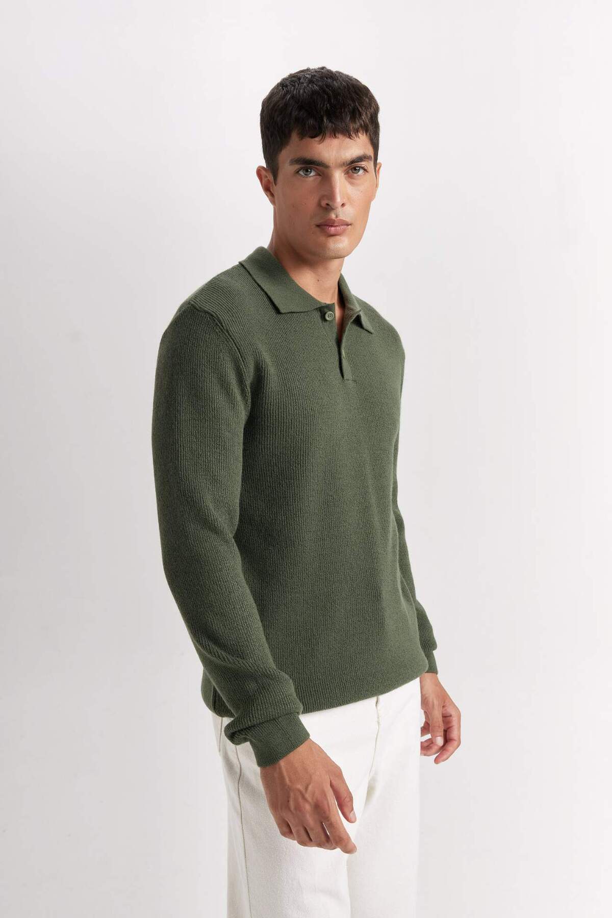 خرید اینترنتی ژاکت بافتنی یقه پولو برش رگولار خاکی D3589AX24WN برند دفاکتو Defacto اورجینال از DeFacto نمایندگی ترکیه