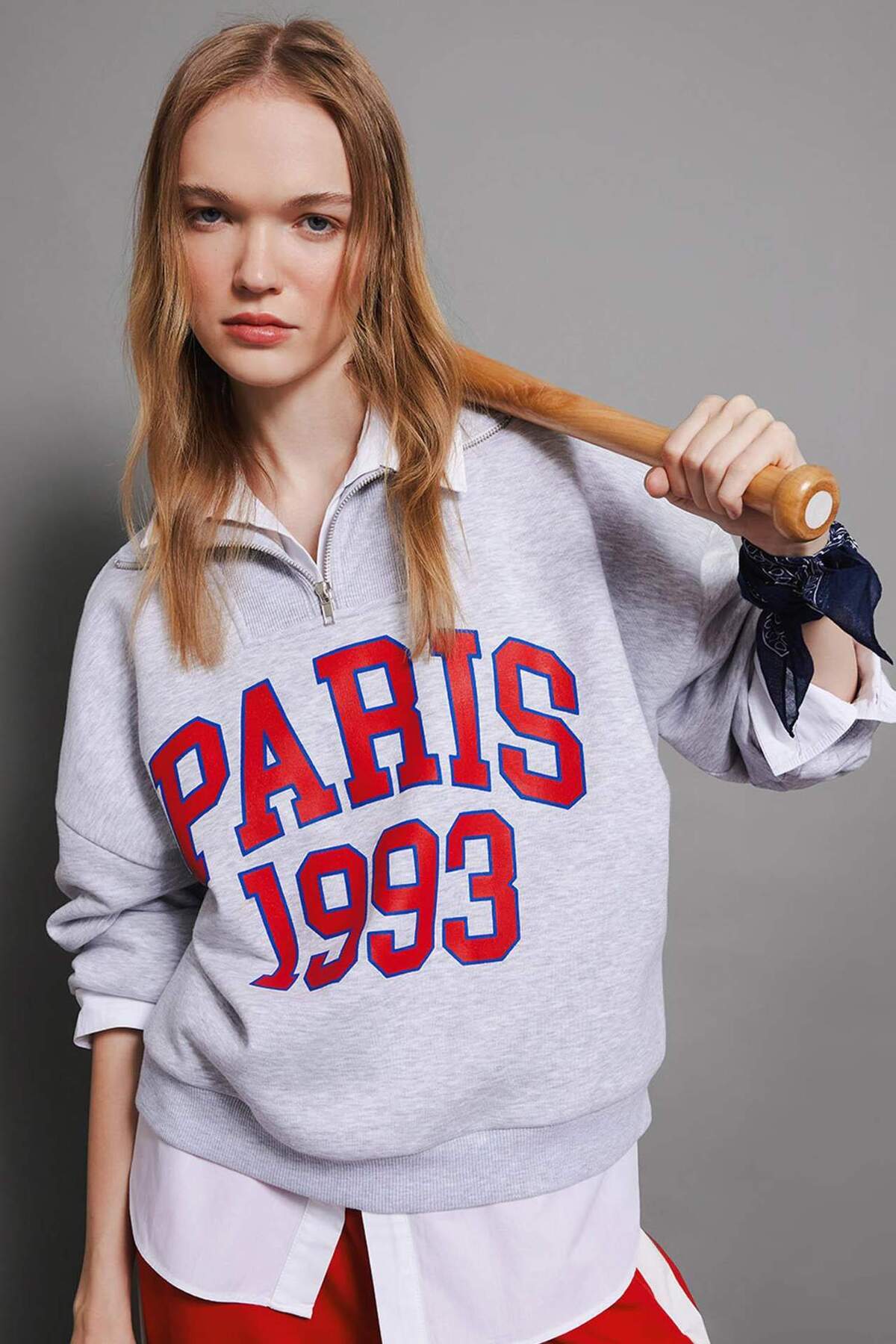 خرید اینترنتی سویشرت ضخیم چاپ شده با نیم زیپ پهن سایز بزرگ D4762AX24AU برند دفاکتو Defacto اورجینال از DeFacto نمایندگی ترکیه