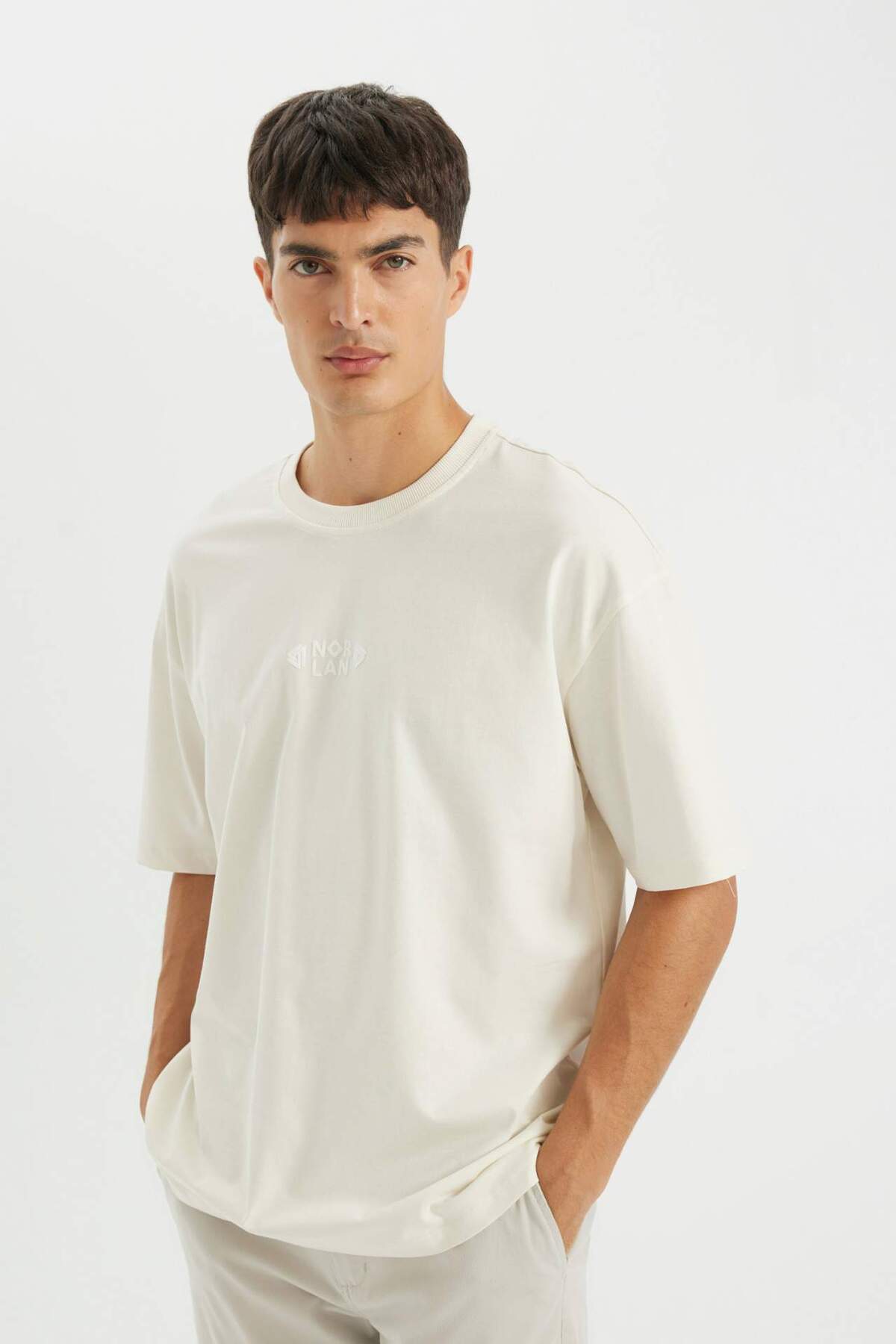 این تی شرت آستین کوتاه یقه خدمه بزرگ با چاپ پشت گزینه ای راحت و شیک را ارائه می دهد.