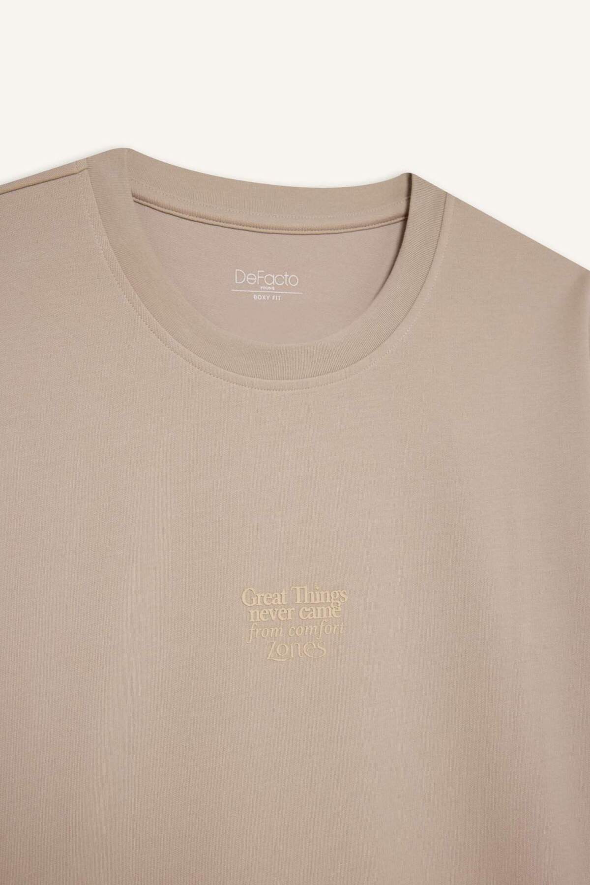 خرید اینترنتی تی شرت پارچه ای سنگین با آستین کوتاه چاپ شده غیر اتو یقه خدمه باکسی Fit D5517AX برند دفاکتو Defacto اورجینال از DeFacto نمایندگی ترکیه