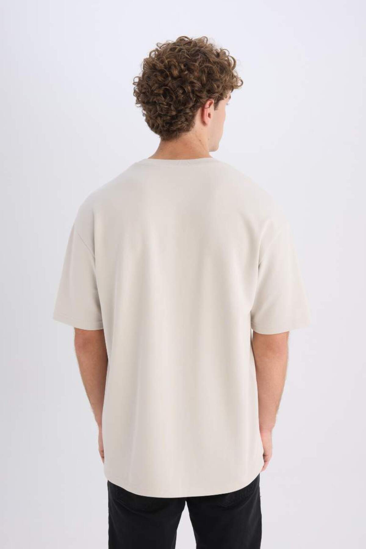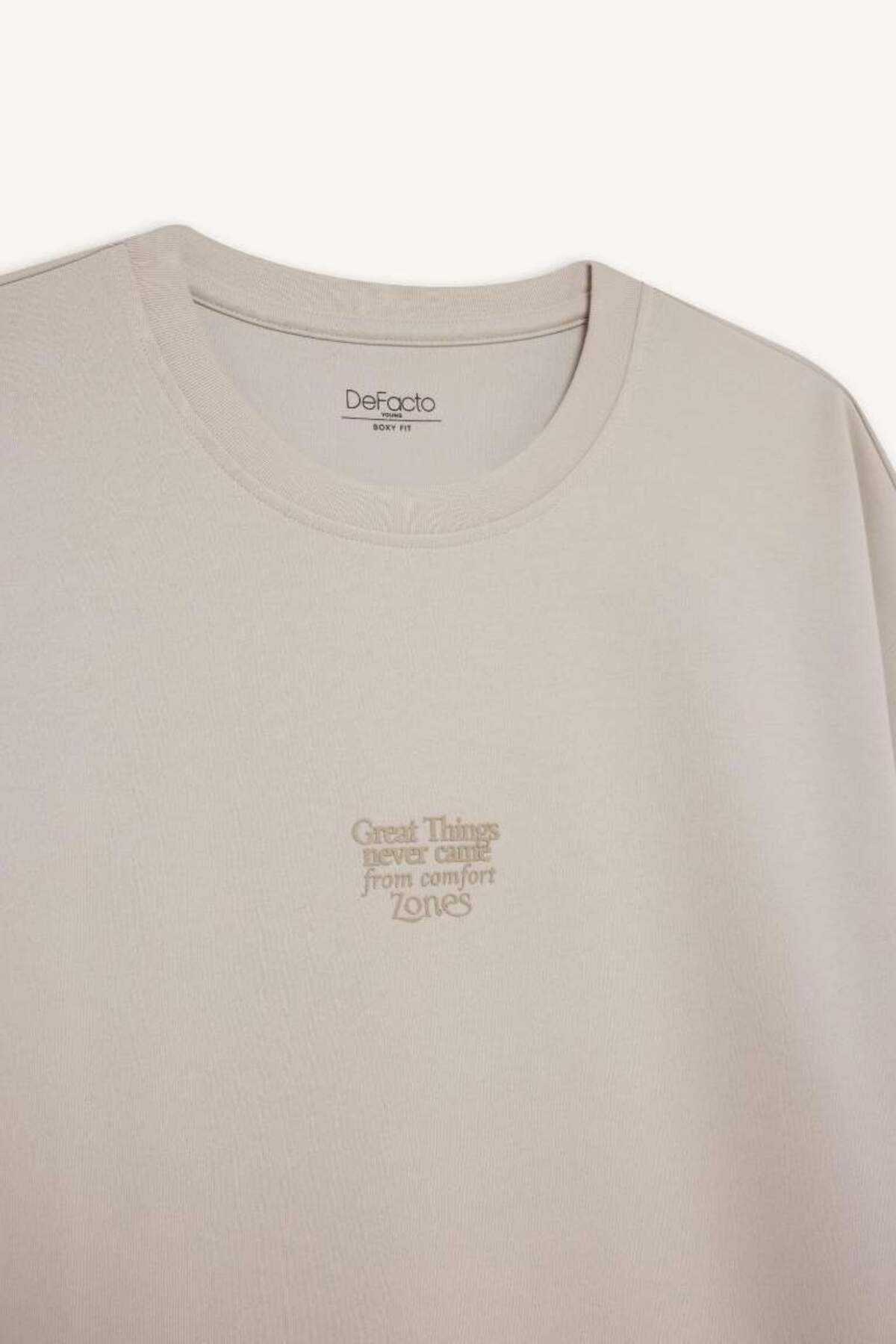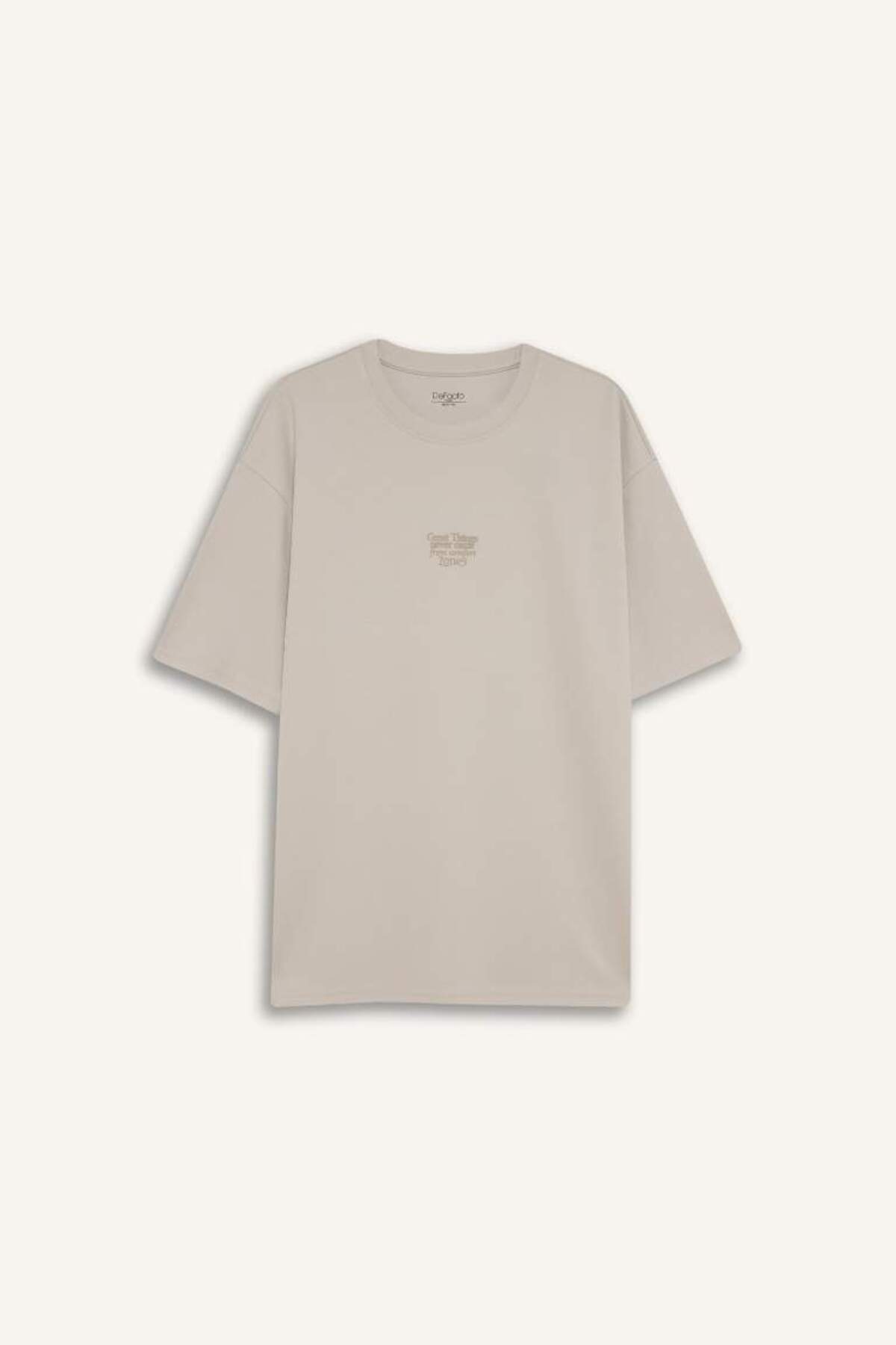 خرید اینترنتی تی شرت پارچه ای سنگین با آستین کوتاه چاپ شده غیر اتو یقه خدمه باکسی Fit D5517AX برند دفاکتو Defacto اورجینال از DeFacto نمایندگی ترکیه