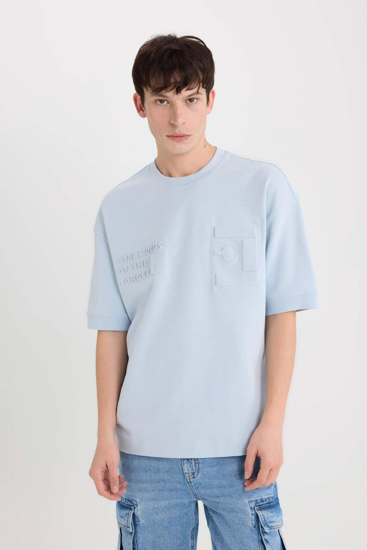 خرید اینترنتی تی شرت پارچه ای سنگین آستین کوتاه چاپ شده با یقه شل و گشاد D5557AX25SP برند دفاکتو Defacto اورجینال از DeFacto نمایندگی ترکیه