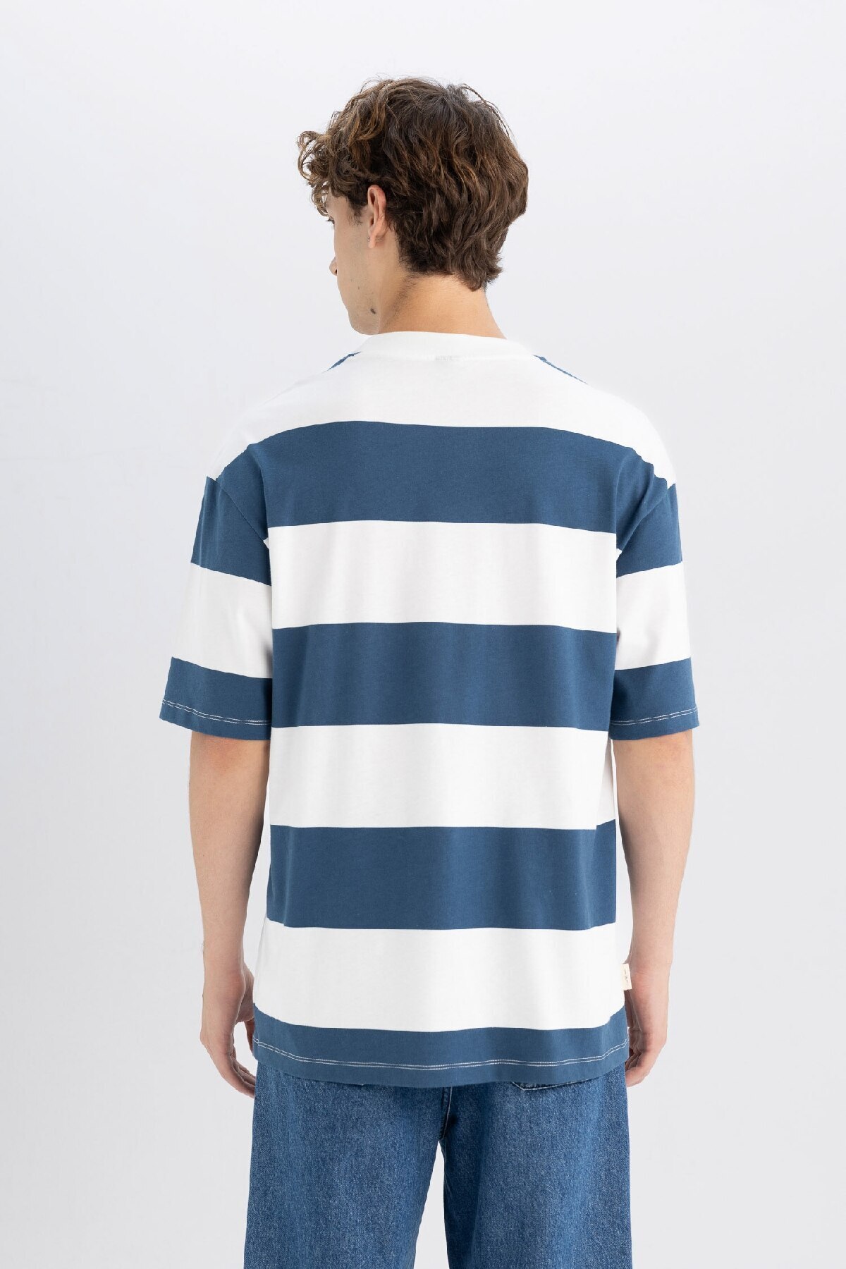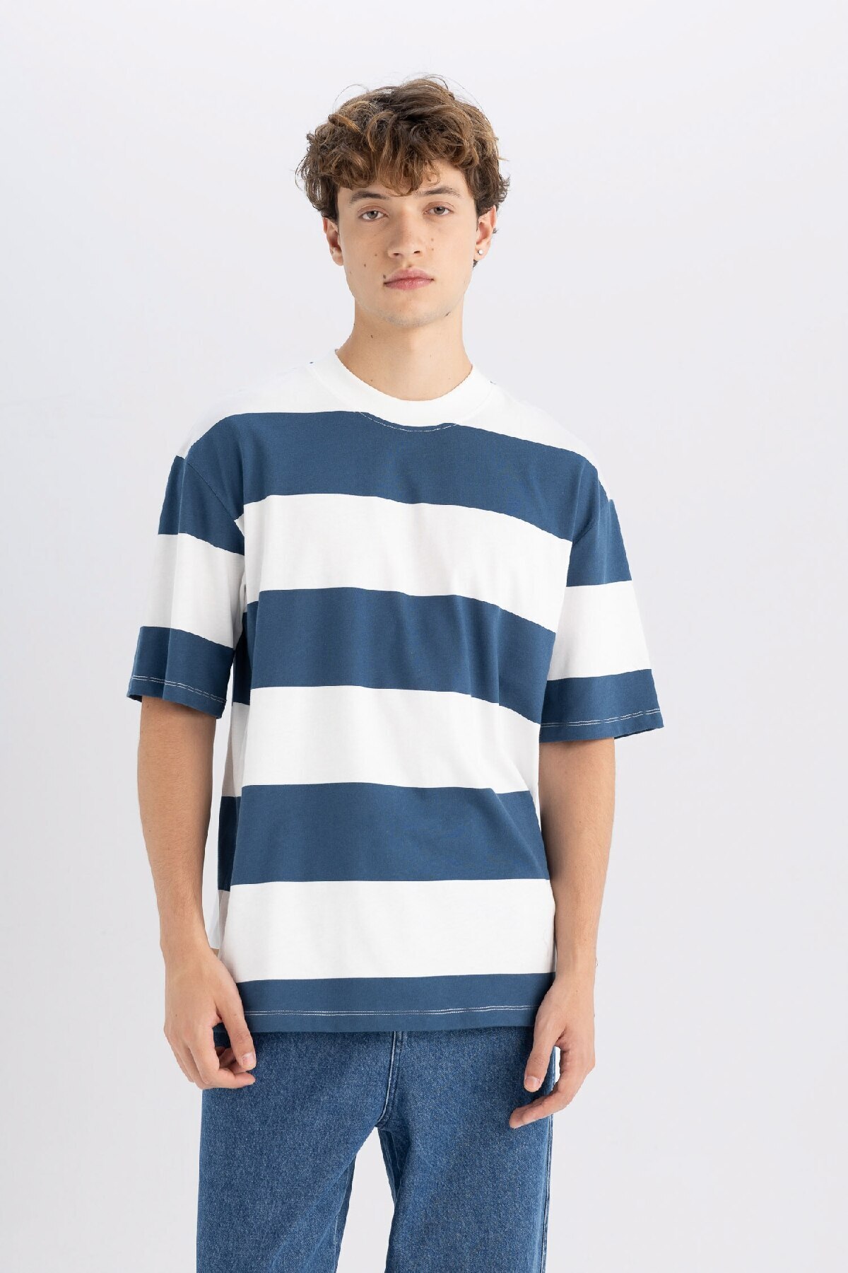خرید اینترنتی تی شرت آستین کوتاه راه راه 100% پنبه ای باکسی مناسب یقه D5595ax24au برند دفاکتو Defacto اورجینال از DeFacto نمایندگی ترکیه