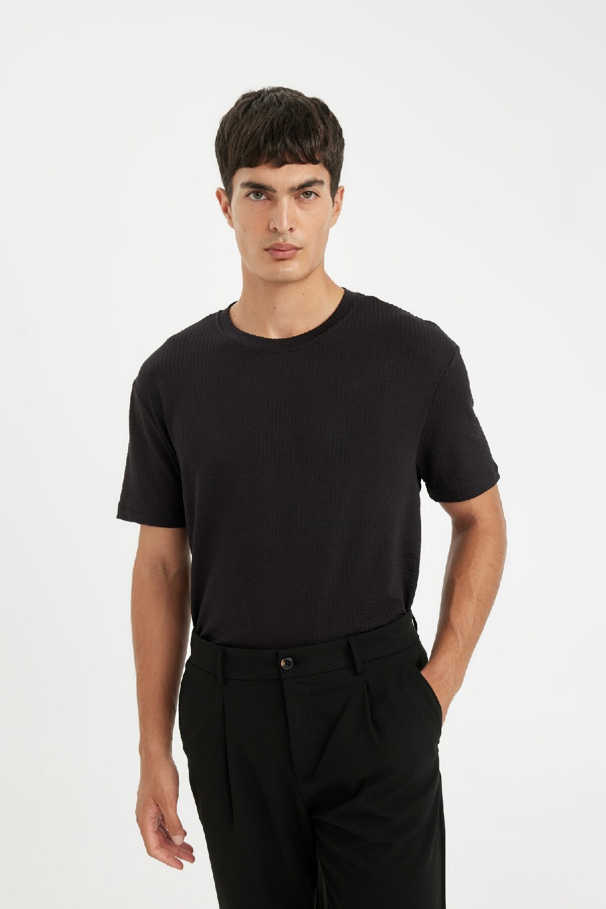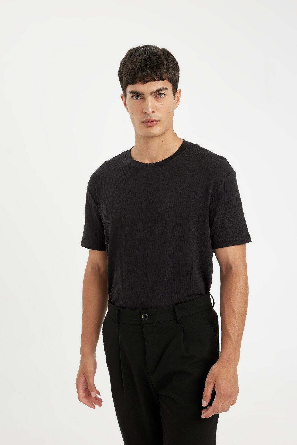 خرید اینترنتی تی شرت یقه کوتاه آستین کوتاه مشکی با تناسب رگولار D6477ax24hs برند دفاکتو Defacto اورجینال از DeFacto نمایندگی ترکیه