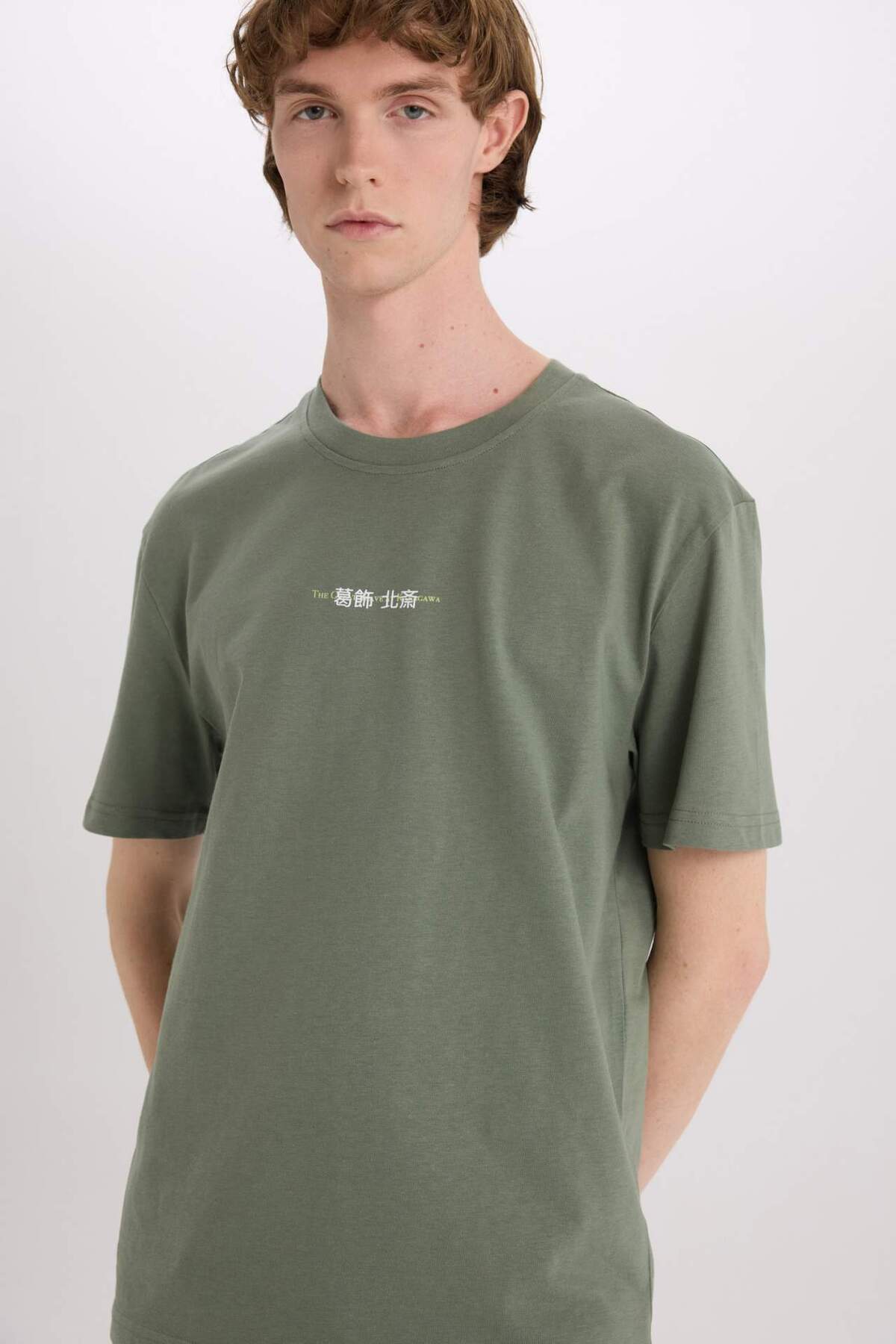 خرید اینترنتی تی شرت آستین کوتاه چاپی 100% هوکوسایی هوکوسای رگولار با یقه یقه دار D6914AX25SP برند دفاکتو Defacto اورجینال از DeFacto نمایندگی ترکیه