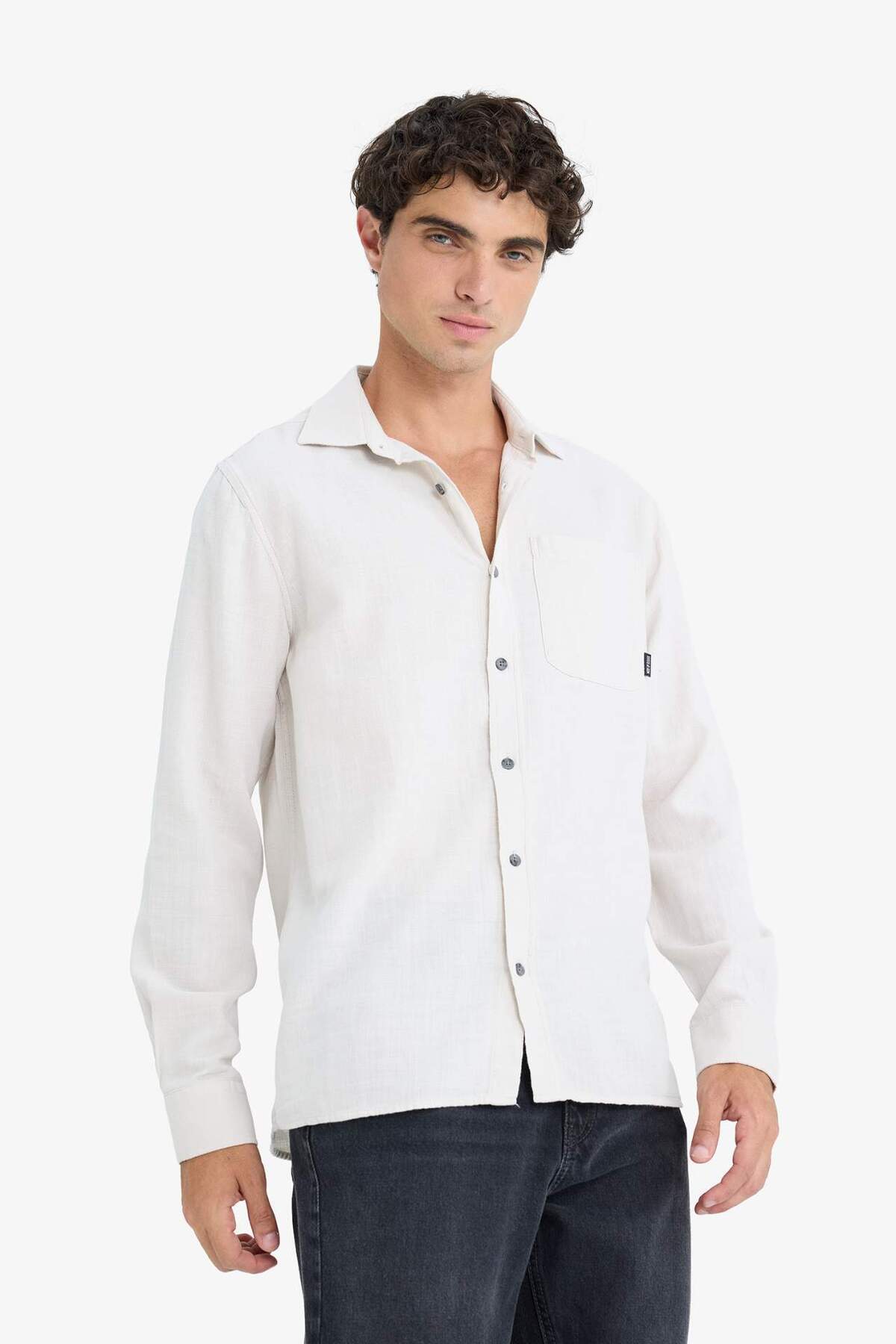 خرید اینترنتی پیراهن آستین بلند ساده 100% پنبه ای با تناسب رگولار D7079AX25SP برند دفاکتو Defacto اورجینال از DeFacto نمایندگی ترکیه