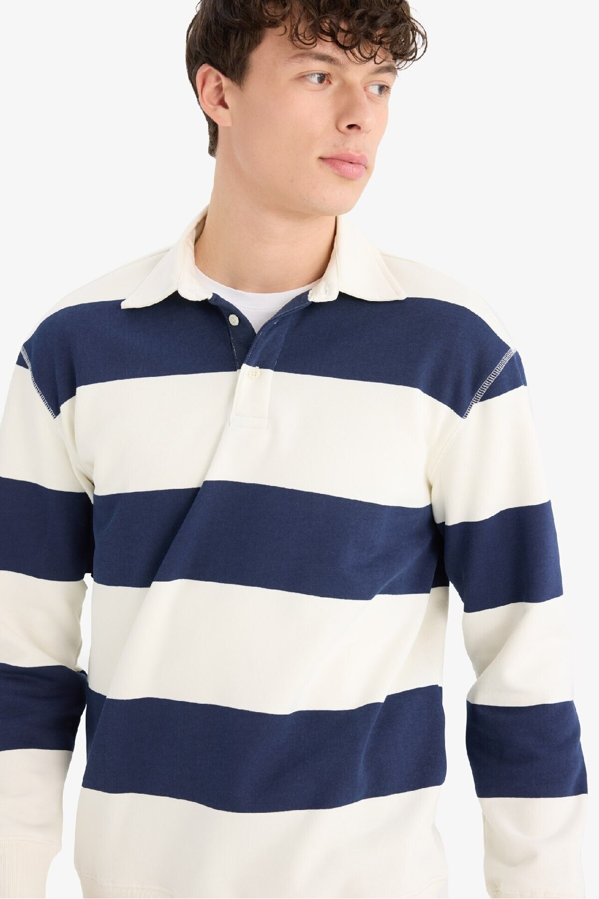 خرید اینترنتی سویشرت ضخیم راه راه یقه پولو ریلکس فیت D7478AX25SP برند دفاکتو Defacto اورجینال از DeFacto نمایندگی ترکیه