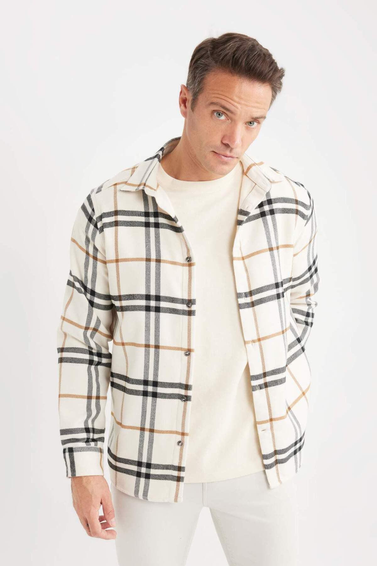 خرید اینترنتی پیراهن آستین بلند نخی چهارخانه دار رگولار D7554AX24AU برند دفاکتو Defacto اورجینال از DeFacto نمایندگی ترکیه