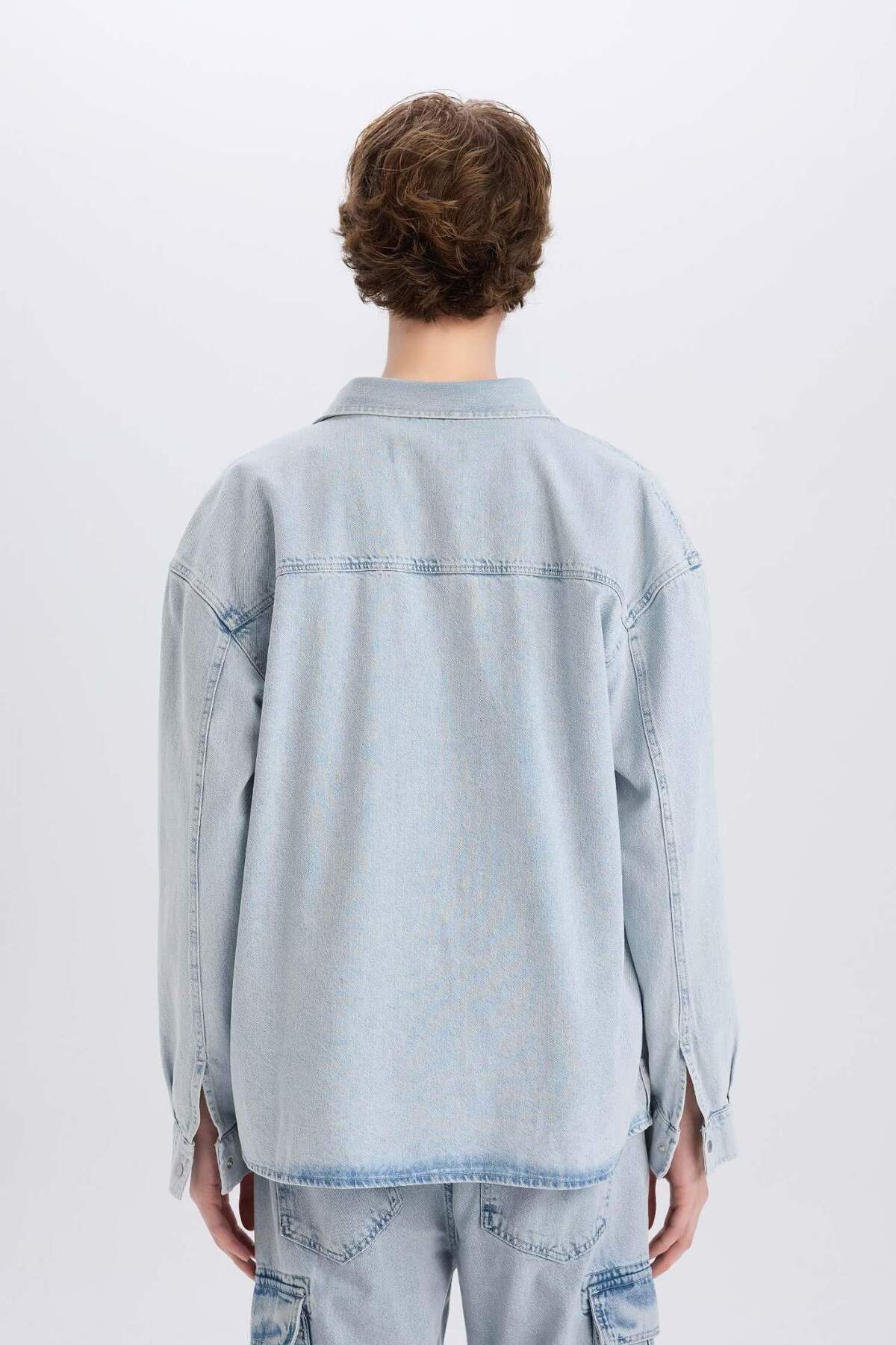 خرید اینترنتی پیراهن جین آستین بلند 100% پنبه سایز پهن D8333AX25SP برند دفاکتو Defacto اورجینال از DeFacto نمایندگی ترکیه