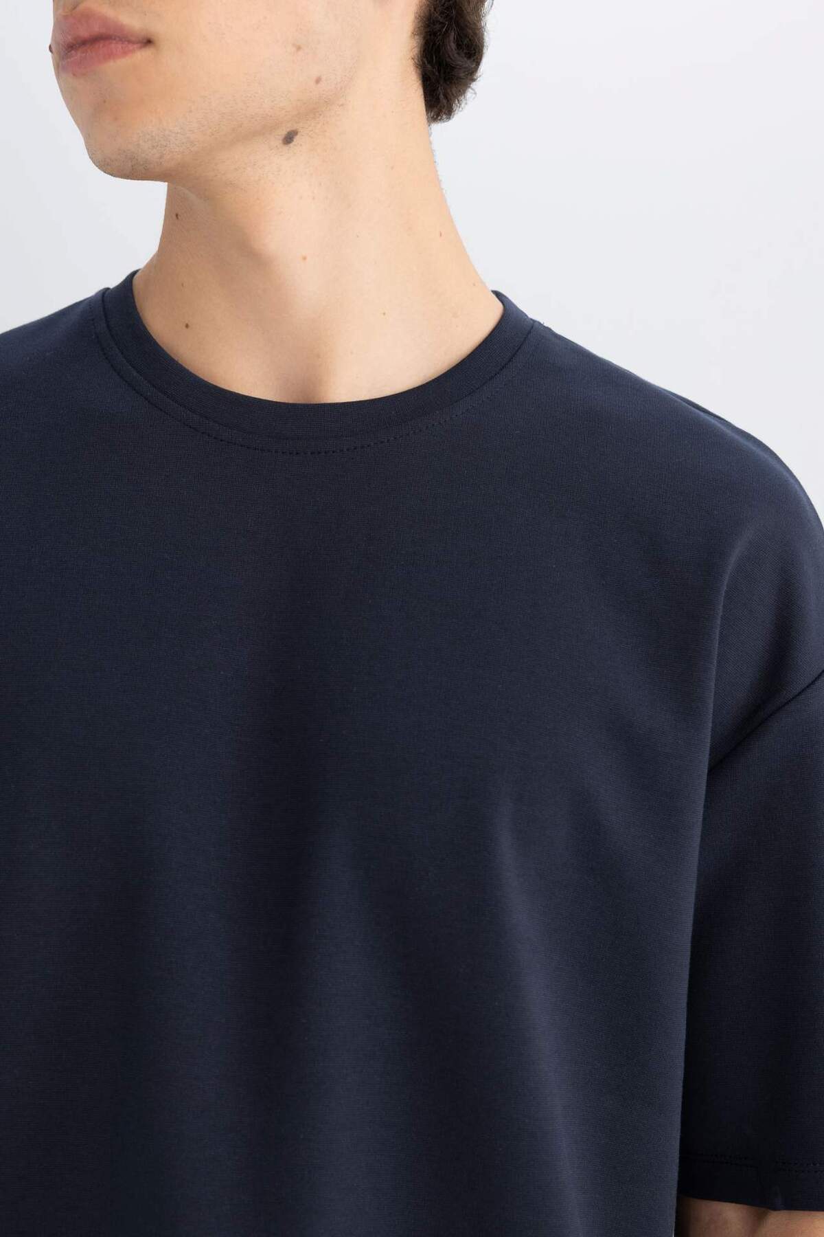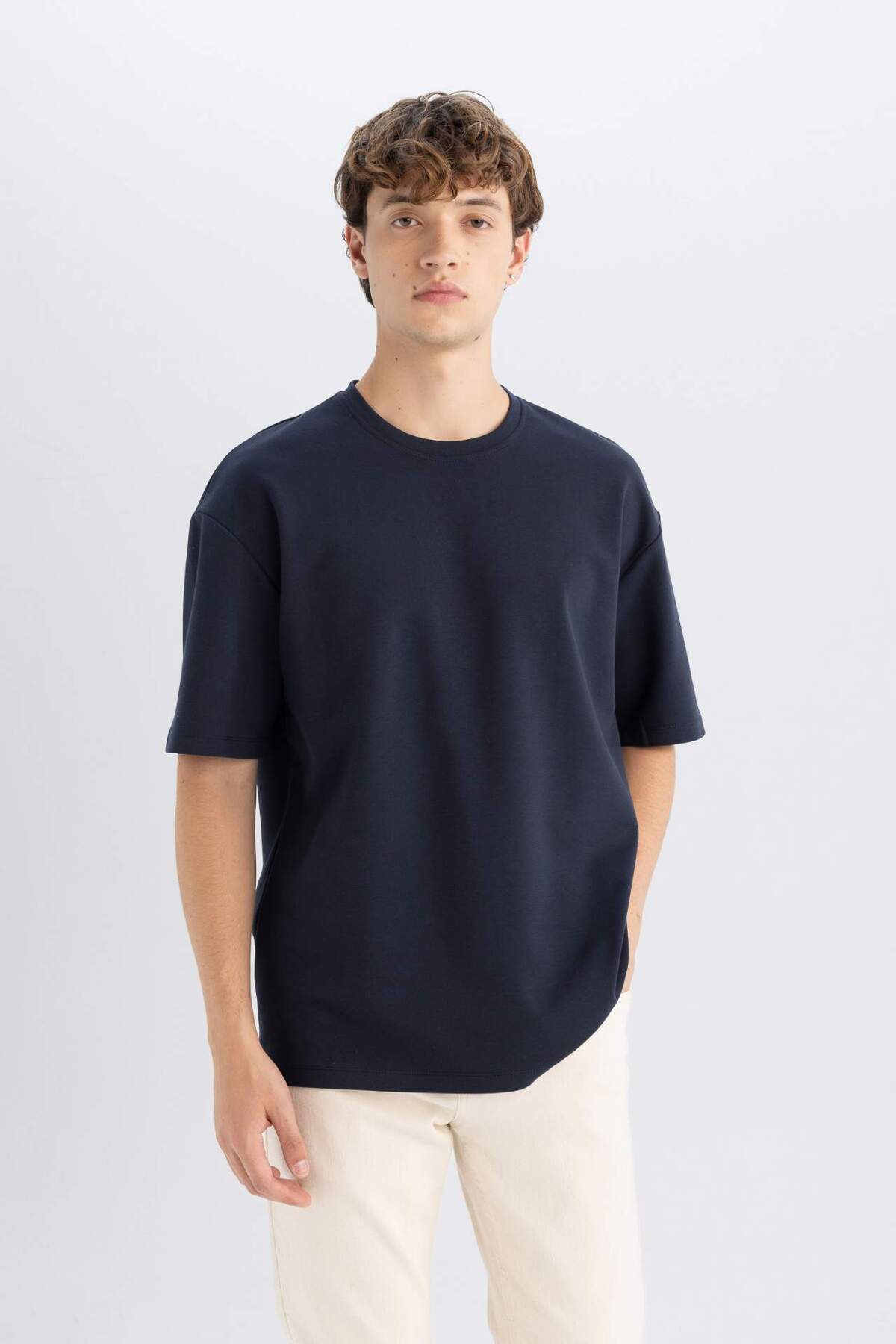 خرید اینترنتی تی شرت پارچه ای ساده ساده و آستین کوتاه یقه باکسی فیت خدمه E0225AX24AU برند دفاکتو Defacto اورجینال از DeFacto نمایندگی ترکیه