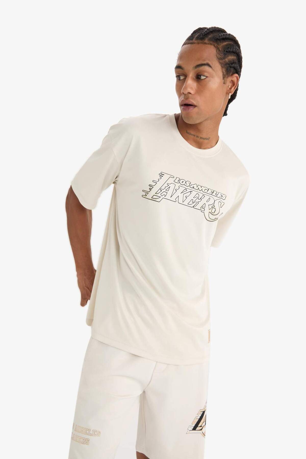 تی شرت آستین کوتاه یقه کوتاه DeFactoFit NBA Los Angeles Lakers Loose Fit Crew با برش راحت و طراحی شیک خود متمایز است.