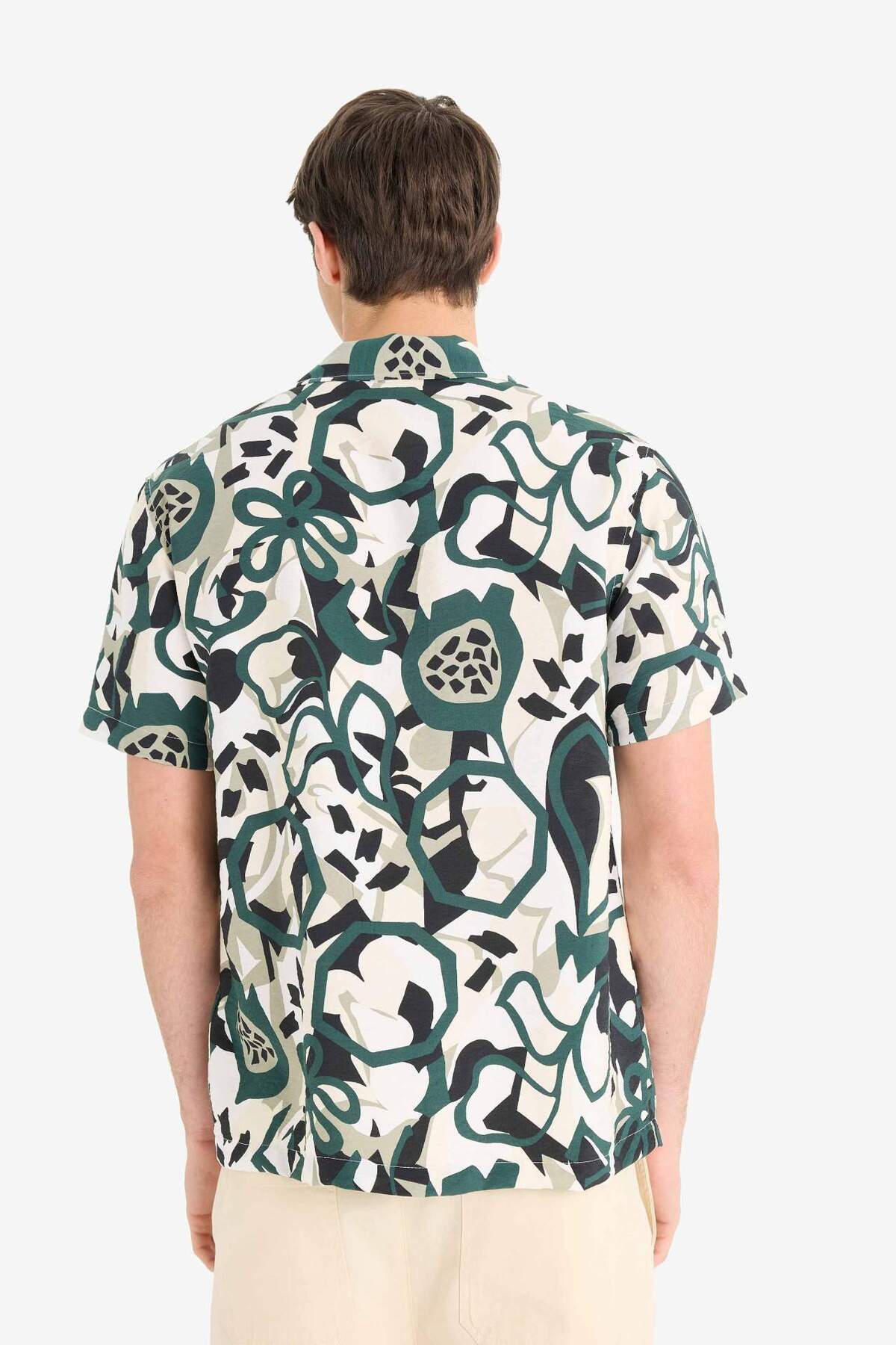 خرید اینترنتی پیراهن آستین کوتاه طرح دار یقه باز رگولار E1271AX25SM برند دفاکتو Defacto اورجینال از DeFacto نمایندگی ترکیه