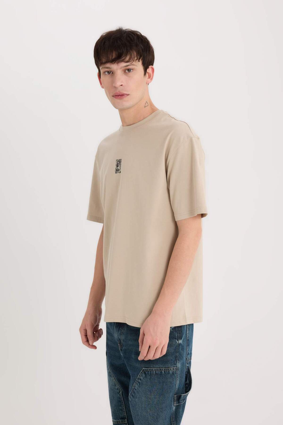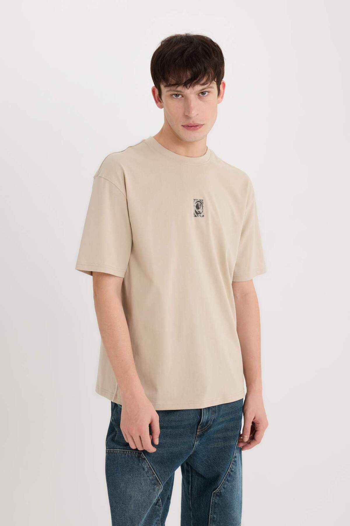 خرید اینترنتی تی شرت آستین کوتاه چاپ شده یقه ای 100% پنبه ای باکسی E1486AX25SP برند دفاکتو Defacto اورجینال از DeFacto نمایندگی ترکیه