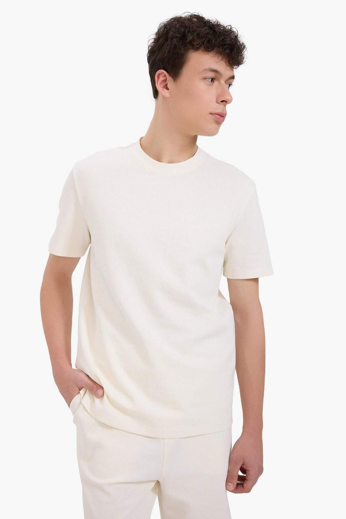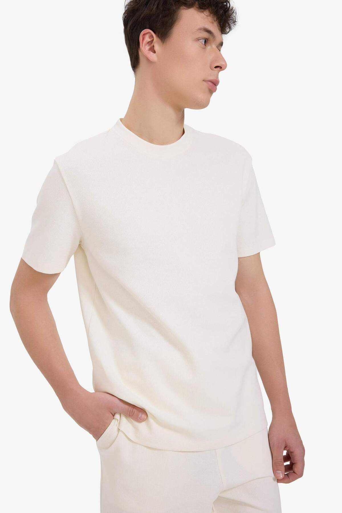 خرید اینترنتی تی شرت یقه کوتاه نخی پارچه ای سنگین E2587AX25SM یقه کوتاه با تناسب رگولار برند دفاکتو Defacto اورجینال از DeFacto نمایندگی ترکیه