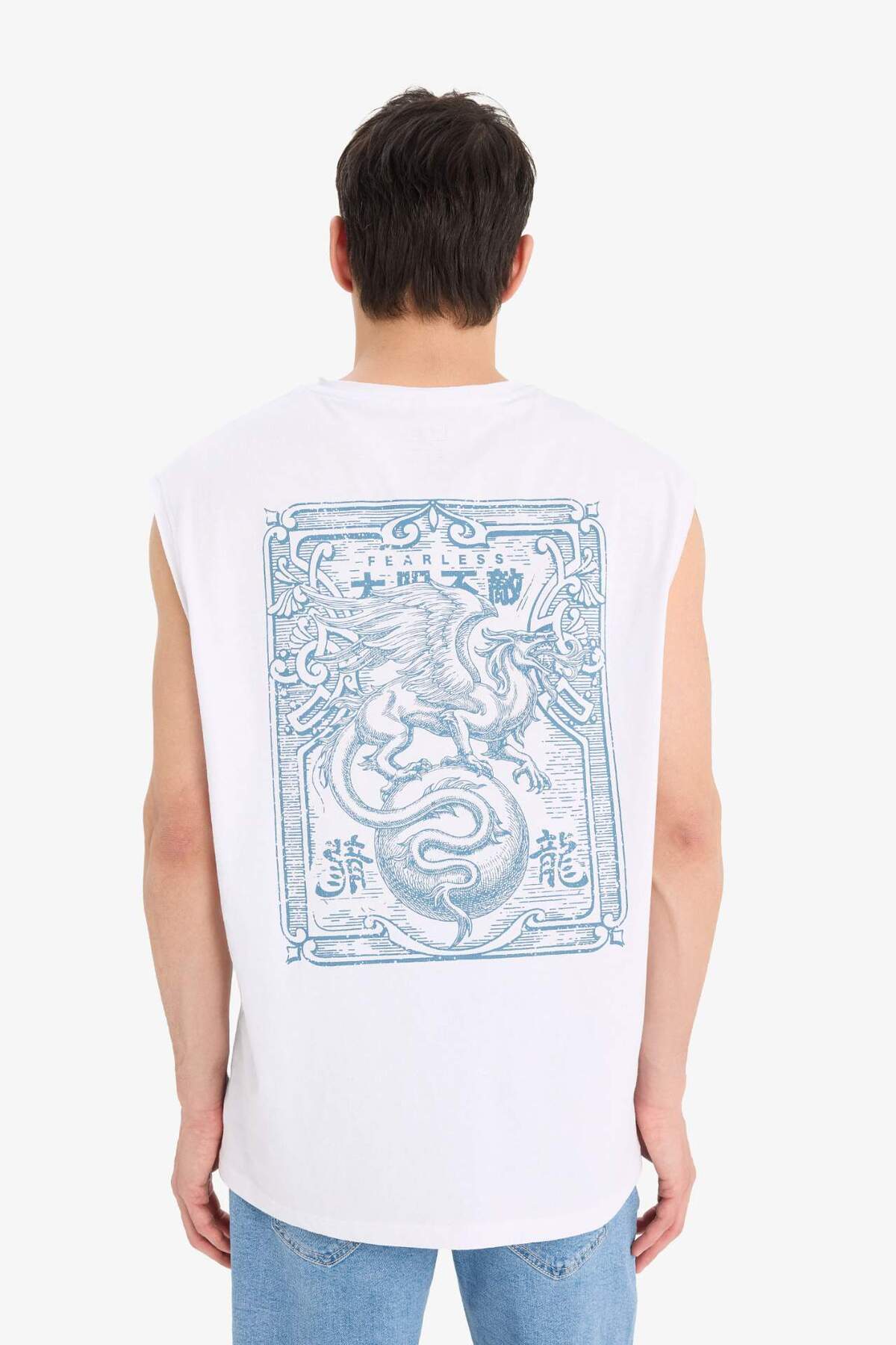 تاپ سفید با طرحی با تم هنری، که به طور خاص برای مردان بزرگسال طراحی شده است.
