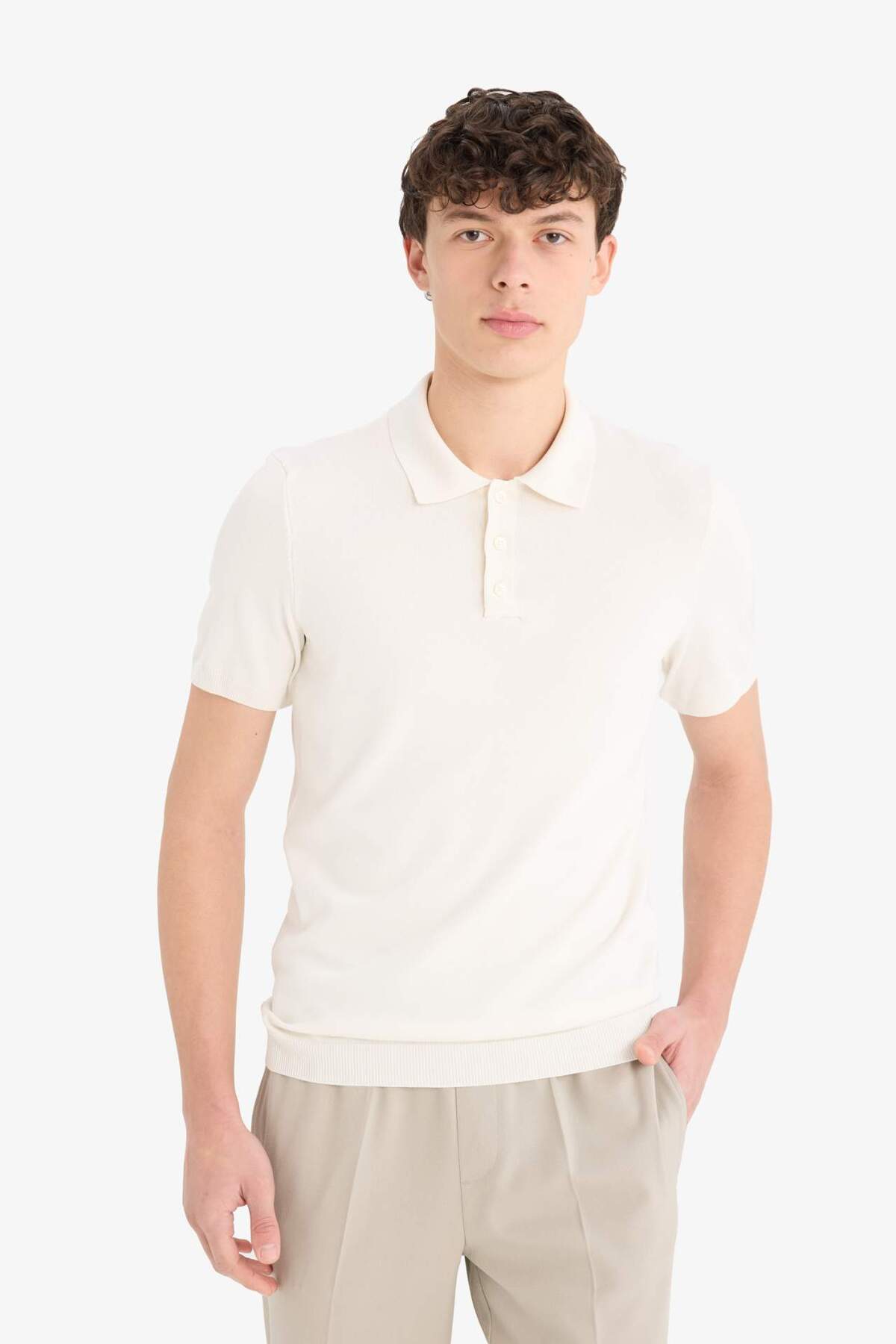خرید اینترنتی تی شرت بافتنی یقه پولو با آستین کوتاه استاندارد E3241AX25SP برند دفاکتو Defacto اورجینال از DeFacto نمایندگی ترکیه