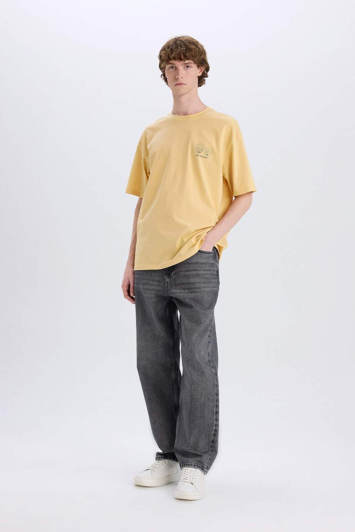خرید اینترنتی تی شرت آستین کوتاه 100% پنبه ای و مورتی باکسی فیت یقه خدمه چاپ شده E3264AX25SM برند دفاکتو Defacto اورجینال از DeFacto نمایندگی ترکیه