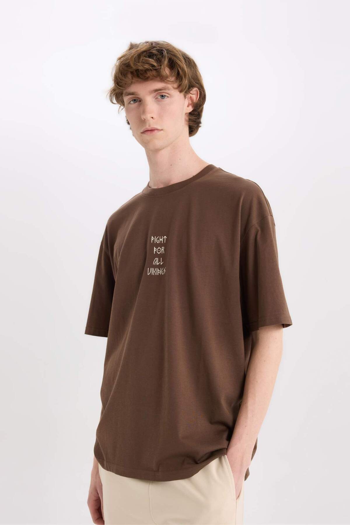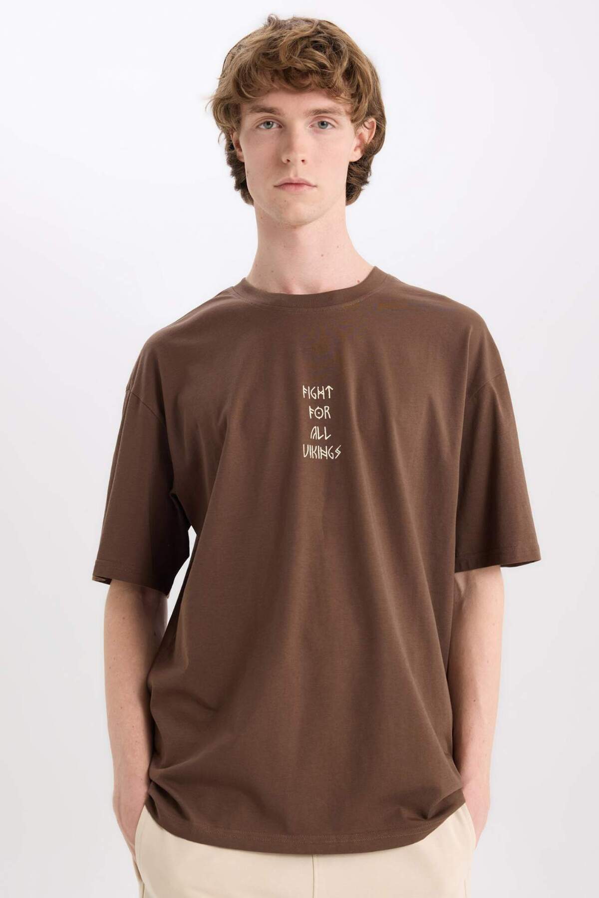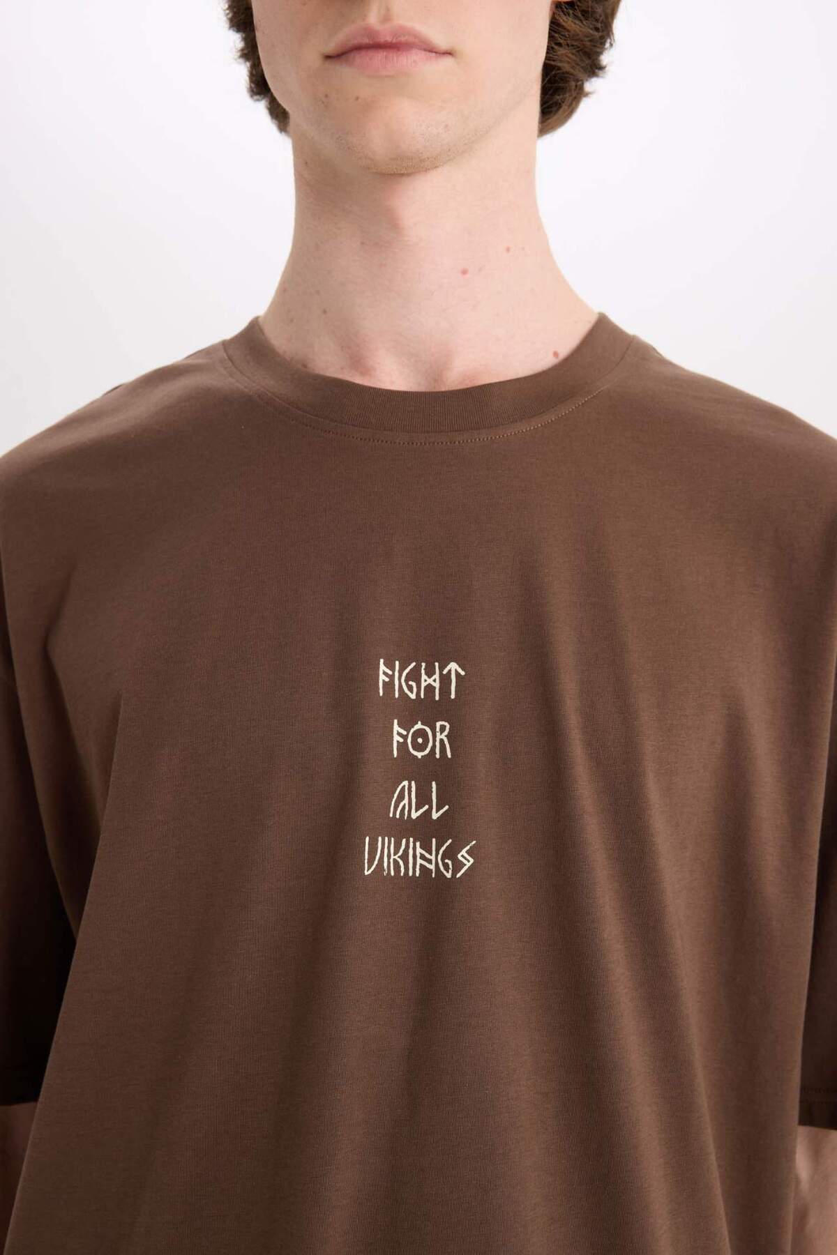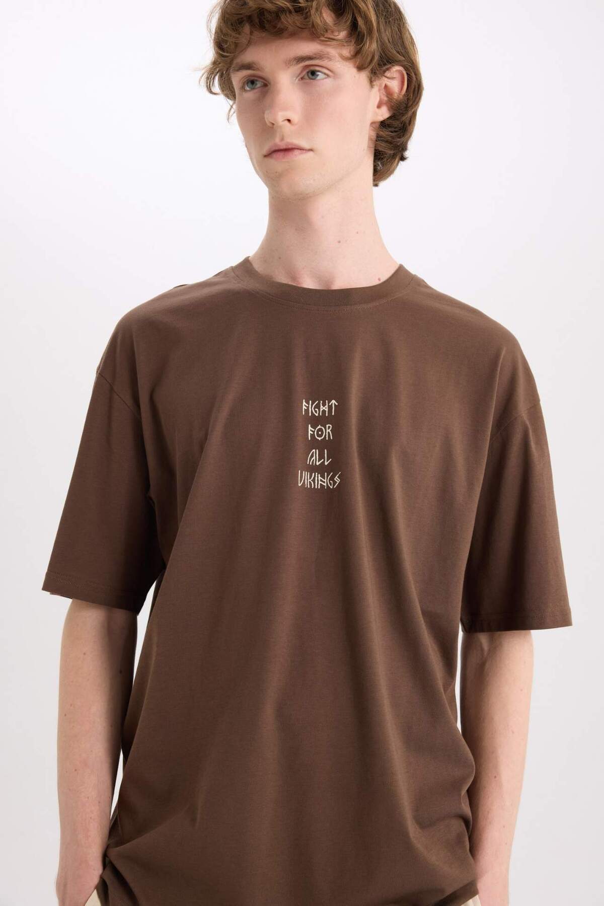 خرید اینترنتی تی شرت آستین کوتاه چاپی 100% پنبه ای وایکینگ Valhalla Boxy Fit Crew یقه تی شرت E3279AX25SM برند دفاکتو Defacto اورجینال از DeFacto نمایندگی ترکیه