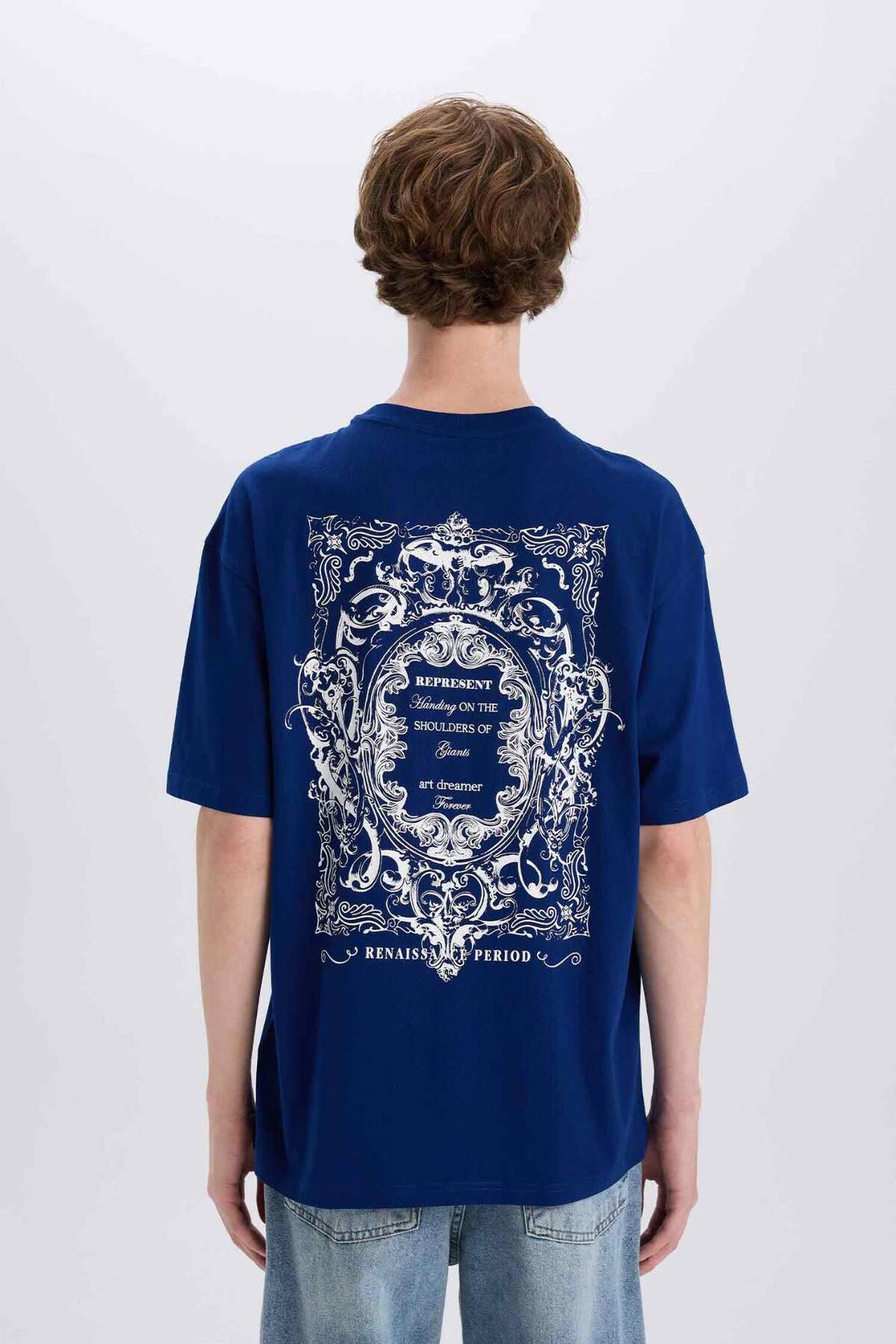 خرید اینترنتی تی شرت آستین کوتاه 100% پنبه ای مناسب پشت یقه ای E4540AX25SM برند دفاکتو Defacto اورجینال از DeFacto نمایندگی ترکیه