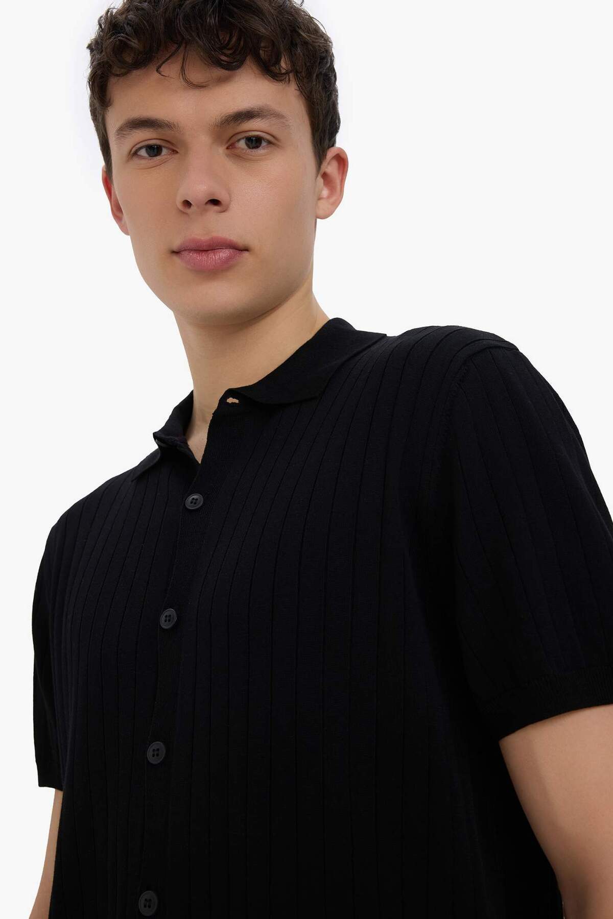 پیراهن یقهدار بافتنی آستین کوتاه استاندارد فیت با ظرافت و راحتی، استایل روزمره شما را با بافت نرم و برش مدرن خود کامل میکند.