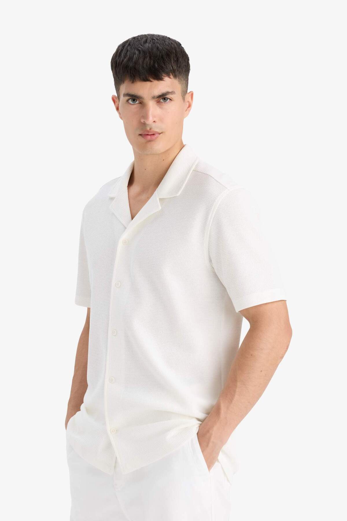 خرید اینترنتی پیراهن آستین کوتاه وافل یقه پولو 100% پنبه ای رگولار E4894AX25SM برند دفاکتو Defacto اورجینال از DeFacto نمایندگی ترکیه