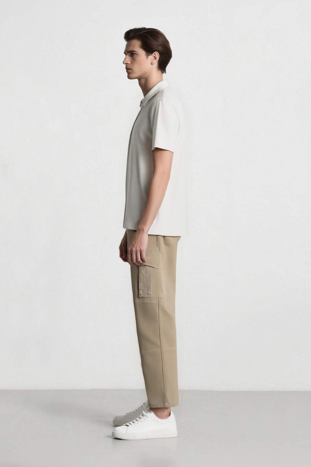 این شلوار گاباردین گشاد و گشاد با جیب های باری استایلی مدرن و راحت ارائه می دهد.