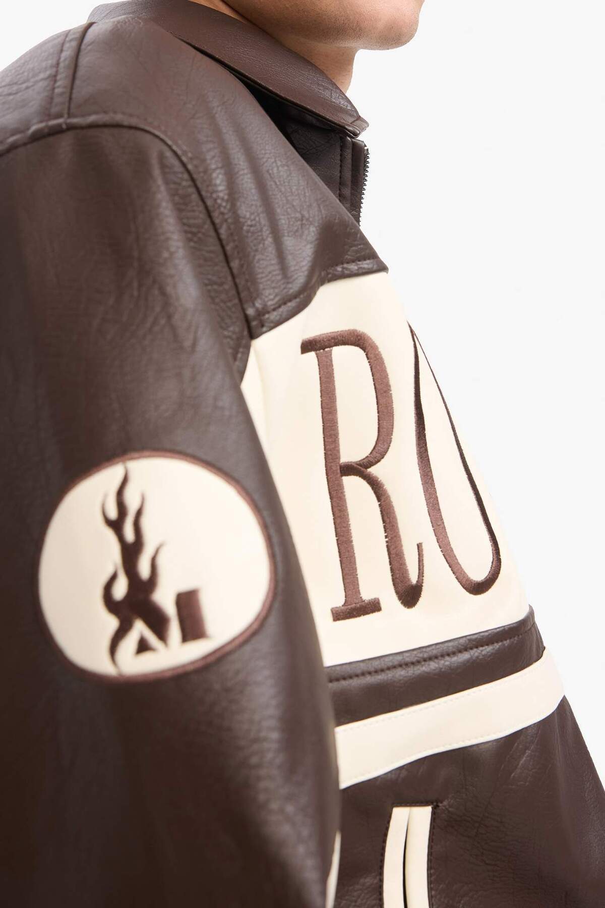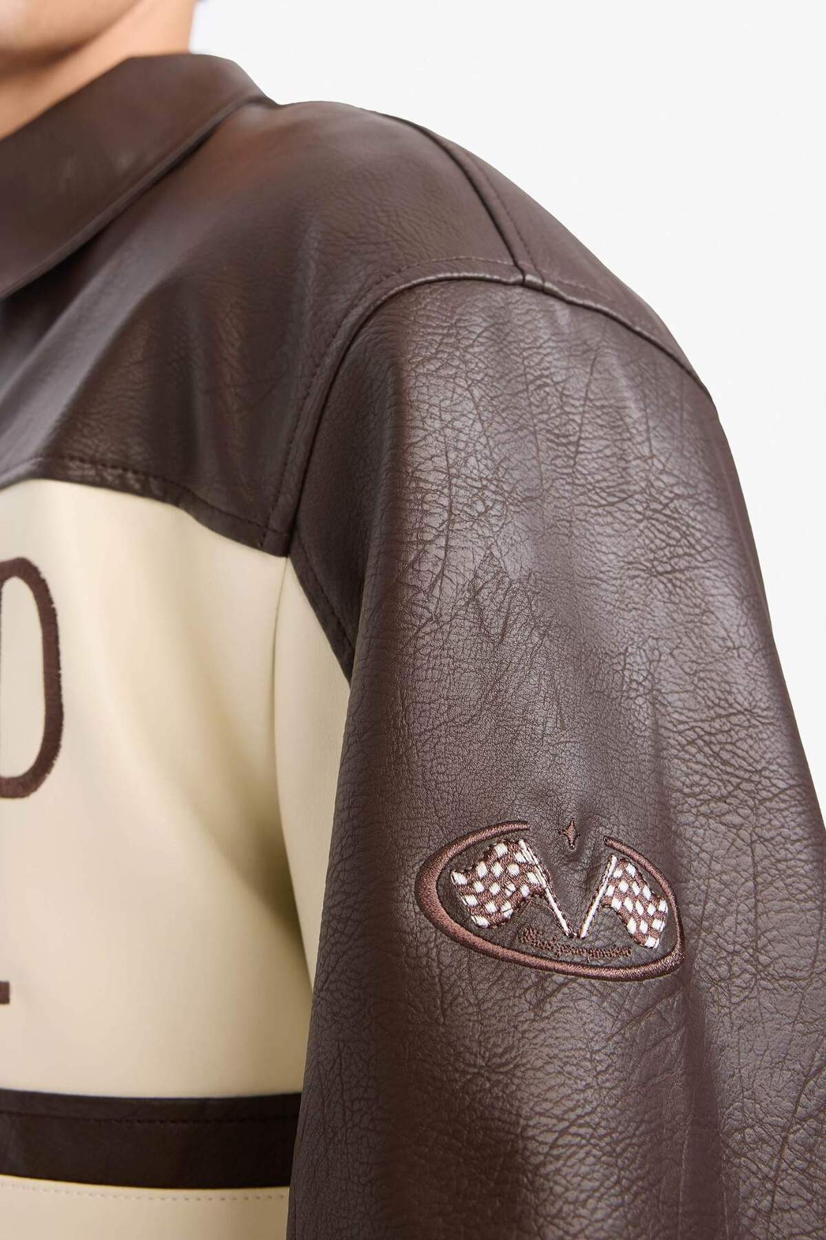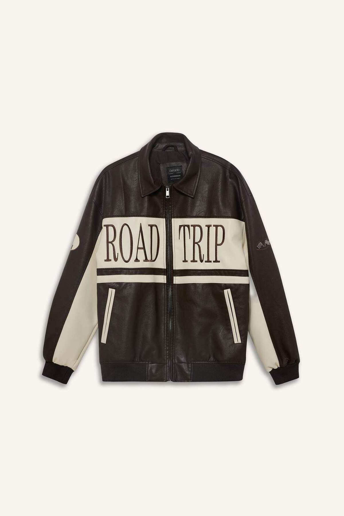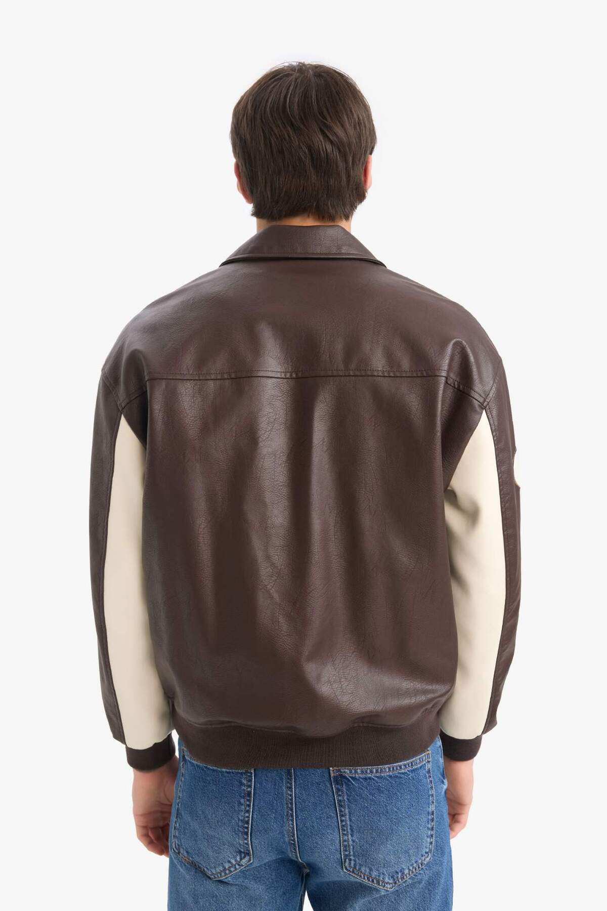 خرید اینترنتی کت چرم مصنوعی با زیپ زیپ دوزی شده با یقه قالب پهن با جیب داخلی E8820AX25AU برند دفاکتو Defacto اورجینال از DeFacto نمایندگی ترکیه