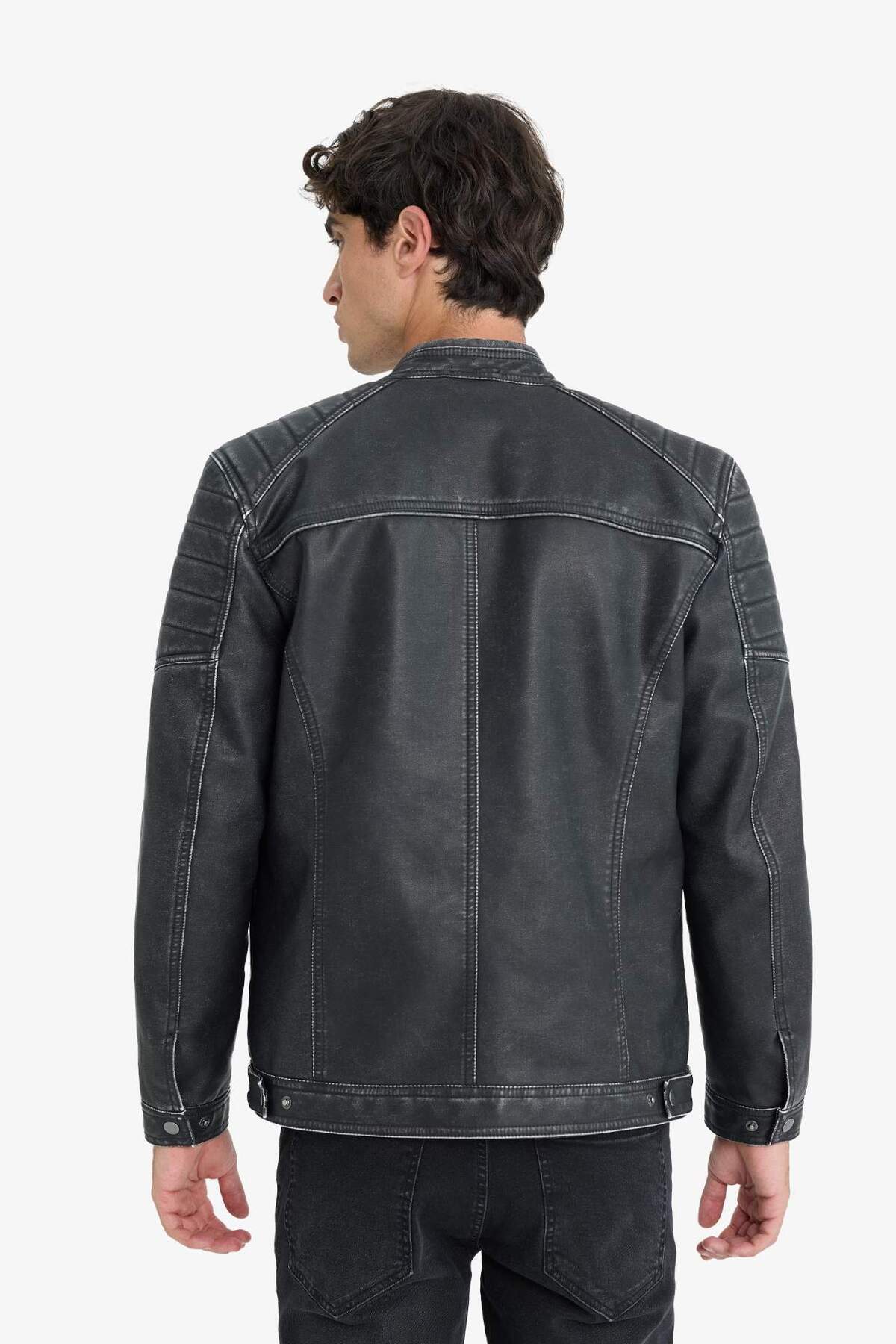 خرید اینترنتی کاپشن چرم مصنوعی دوچرخه سواری زیپ دار یقه ای باریک E8855AX25AU برند دفاکتو Defacto اورجینال از DeFacto نمایندگی ترکیه