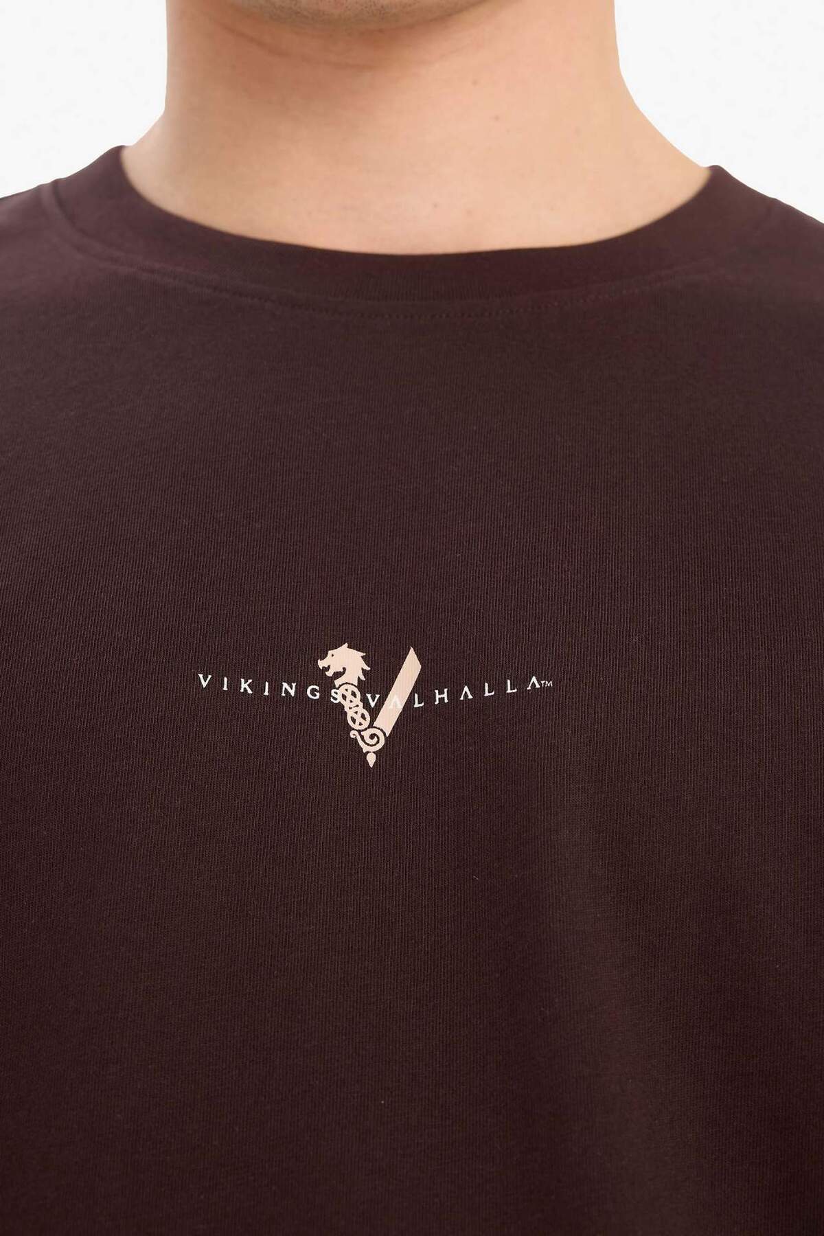 خرید اینترنتی تیشرت 100% پنبه ای وایکینگ های Valhalla Boxy Fit Relaxed Cut Crew یقه پشت چاپی تی شرت آستین کوتاه E9294A برند دفاکتو Defacto اورجینال از DeFacto نمایندگی ترکیه