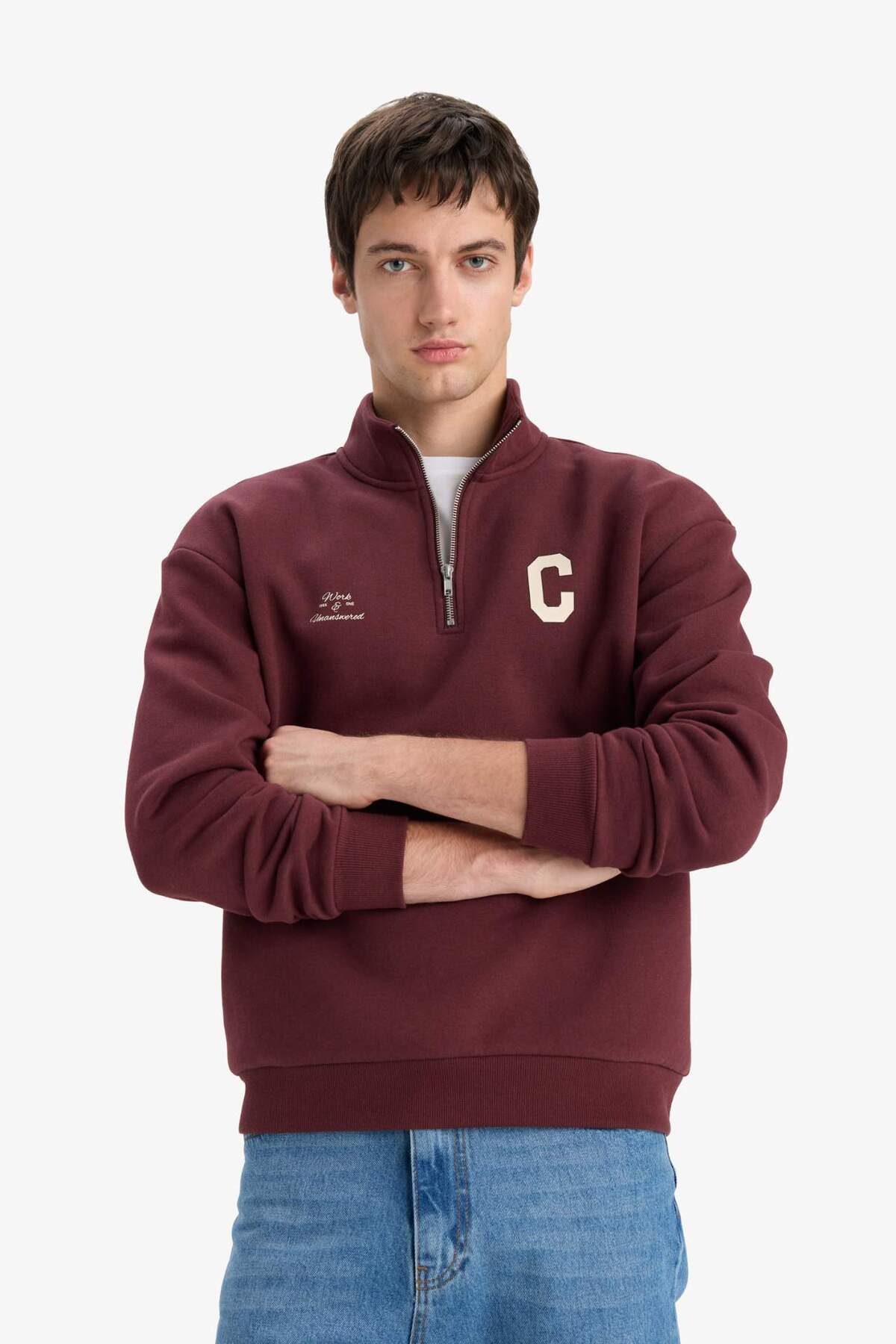 خرید اینترنتی سویشرت زیپ دار یقه ای مناسب باکسی E9415AX25AU برند دفاکتو Defacto اورجینال از DeFacto نمایندگی ترکیه