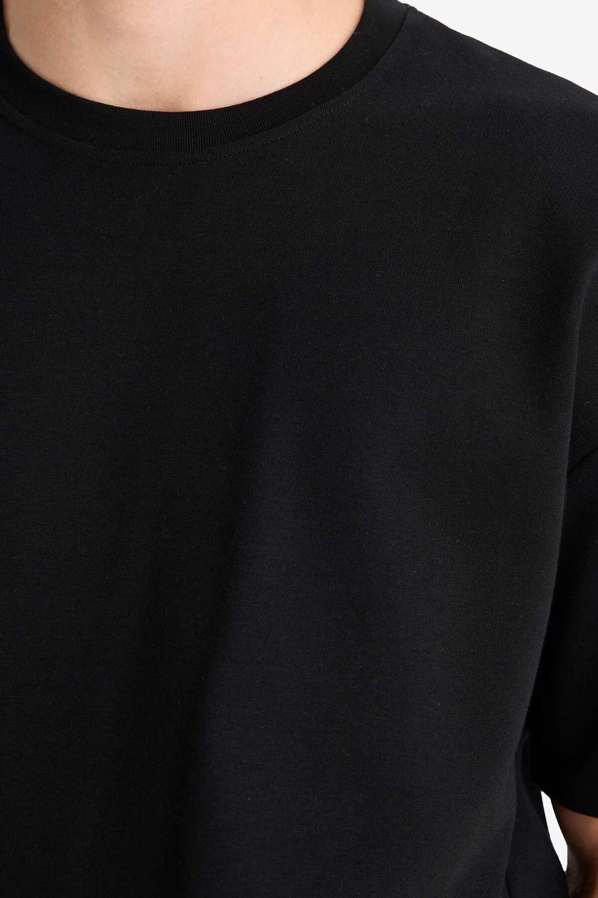خرید اینترنتی تی شرت آستین کوتاه ساده ساده با یقه سنگین پارچه ای سایز بزرگ E9798AX25AU برند دفاکتو Defacto اورجینال از DeFacto نمایندگی ترکیه