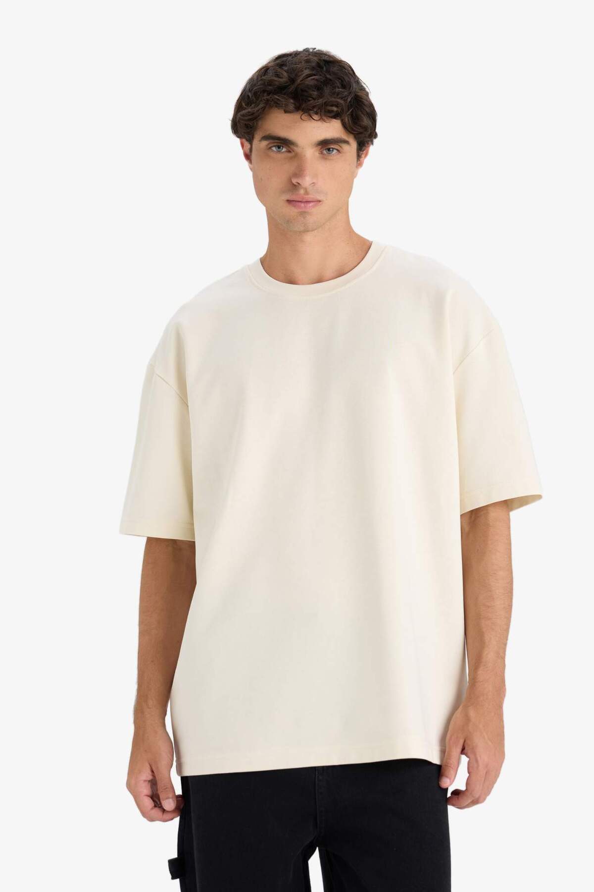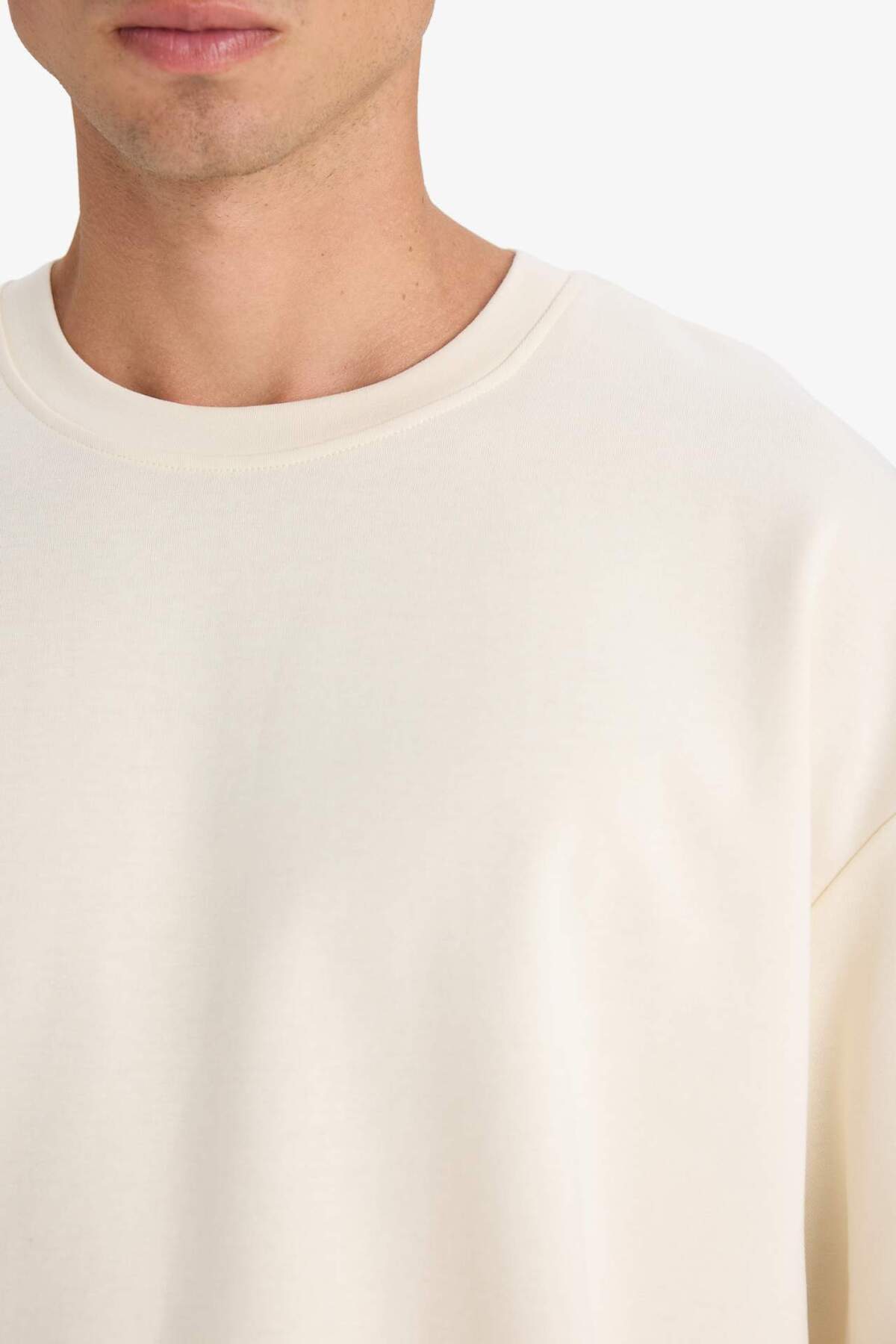خرید اینترنتی تی شرت آستین کوتاه ساده ساده با یقه سنگین پارچه ای سایز بزرگ E9798AX25AU برند دفاکتو Defacto اورجینال از DeFacto نمایندگی ترکیه
