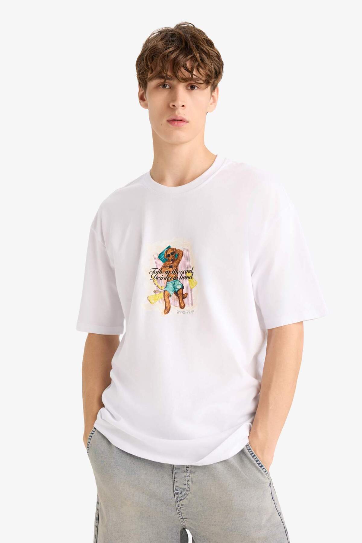 خرید اینترنتی تی شرت آستین کوتاه چاپ شده با یقه باکسی فیت F4534AX25HS برند دفاکتو Defacto اورجینال از DeFacto نمایندگی ترکیه