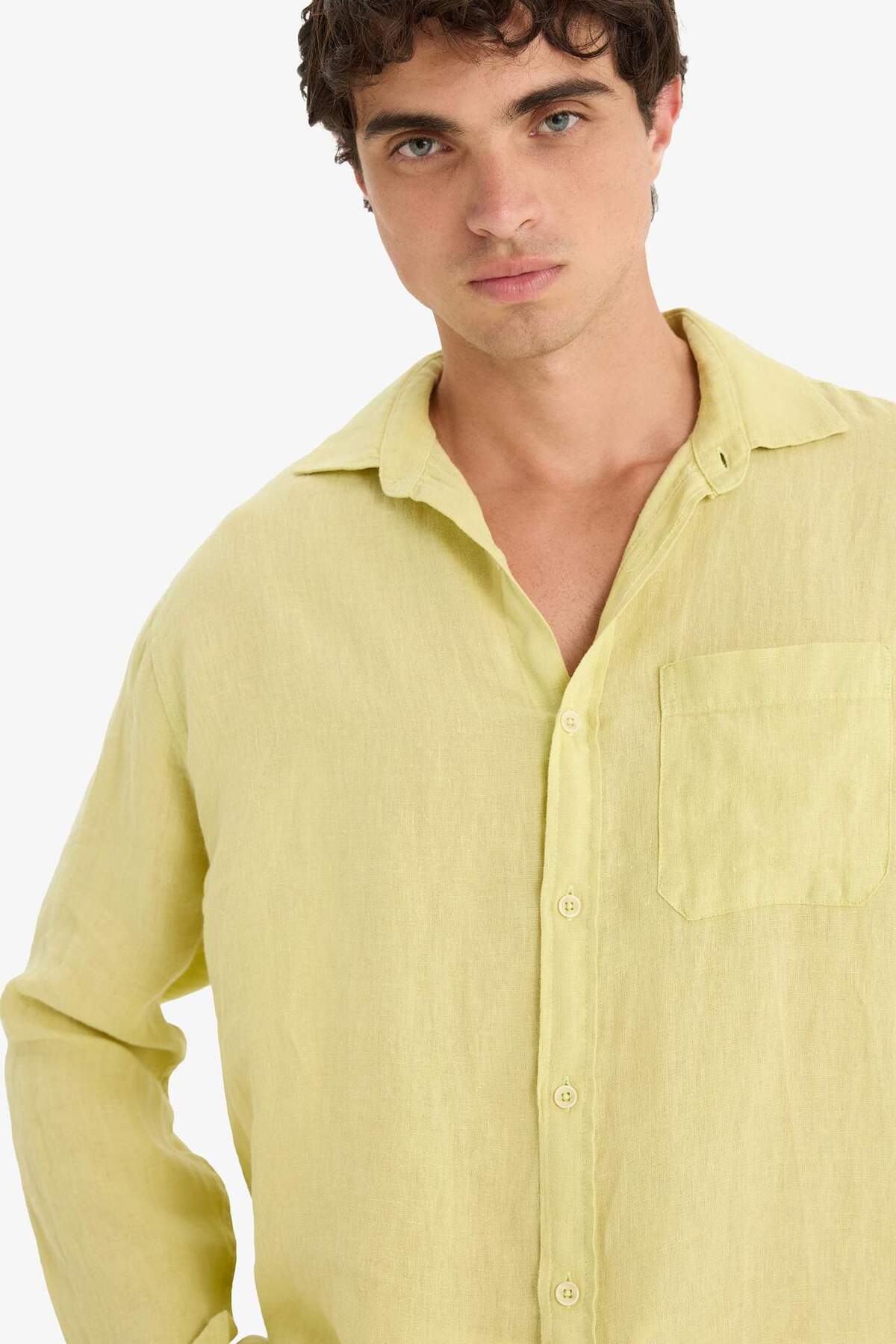 خرید اینترنتی پیراهن آستین بلند 100% کتانی Relax Fit F4598AX25HS برند دفاکتو Defacto اورجینال از DeFacto نمایندگی ترکیه