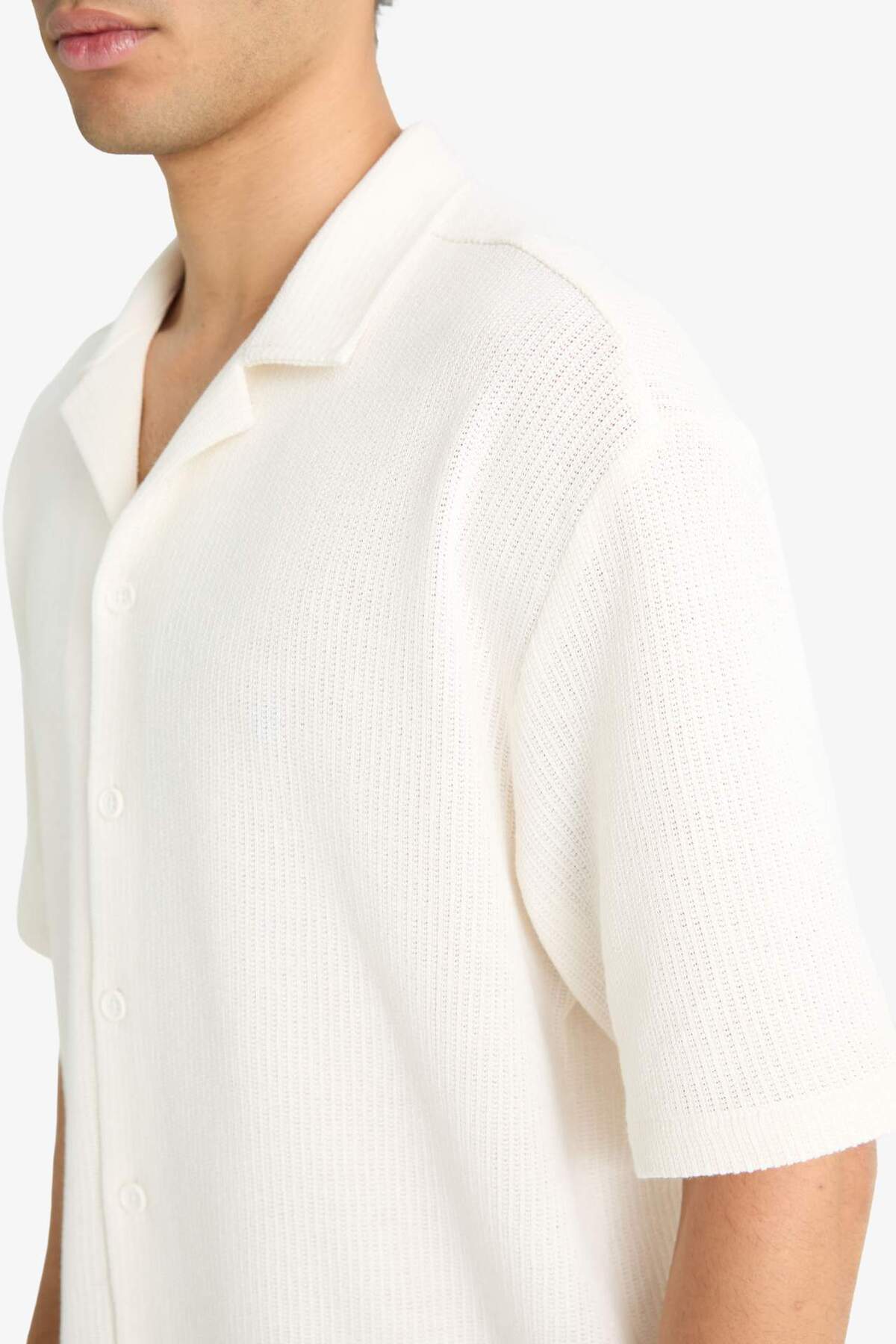خرید اینترنتی پیراهن آستین کوتاه نخی شانه دار با یقه پولو باکسی Fit G3359AX25AU برند دفاکتو Defacto اورجینال از DeFacto نمایندگی ترکیه