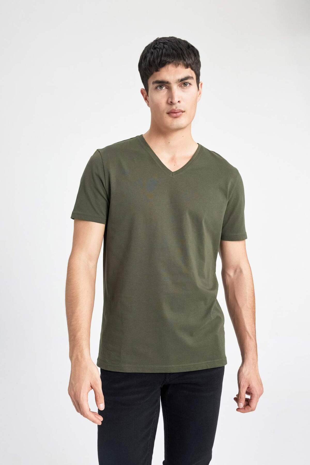 خرید اینترنتی Slim Fit Slim Cut V یقه ساده آستین کوتاه 100% پنبه تی شرت M7668AZ23SP برند دفاکتو Defacto اورجینال از DeFacto نمایندگی ترکیه