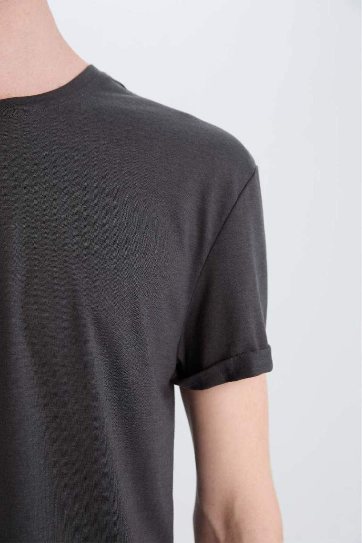 خرید اینترنتی تی شرت آستین کوتاه پایه یقه بلند با عضلات بلند N2104AZ21SM برند دفاکتو Defacto اورجینال از DeFacto نمایندگی ترکیه