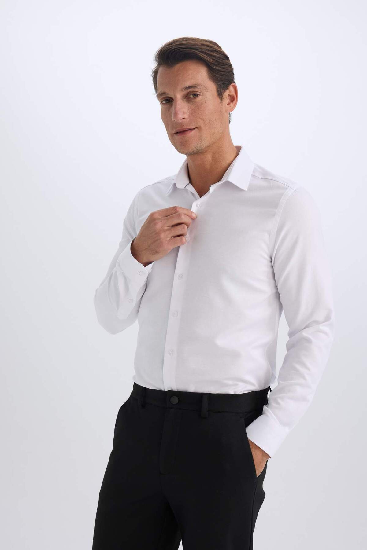 خرید اینترنتی Slim Fit Slim Cut یقه پولو Easy Iron پیراهن آستین بلند ساده Oxford Basic R4340AZ25SP برند دفاکتو Defacto اورجینال از DeFacto نمایندگی ترکیه
