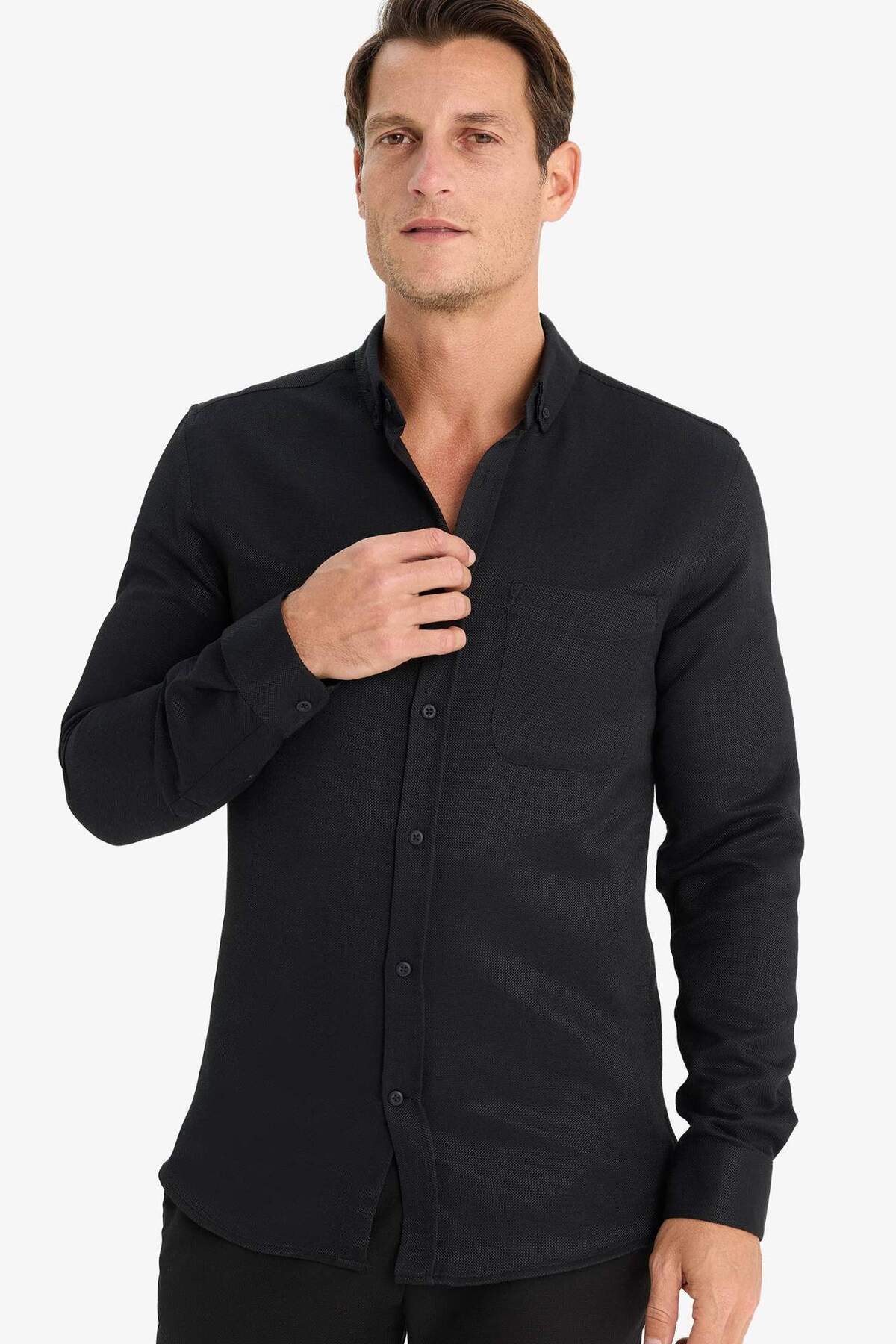 خرید اینترنتی پیراهن آستین بلند یقه باریک بافت T2066AZ24AU برند دفاکتو Defacto اورجینال از DeFacto نمایندگی ترکیه