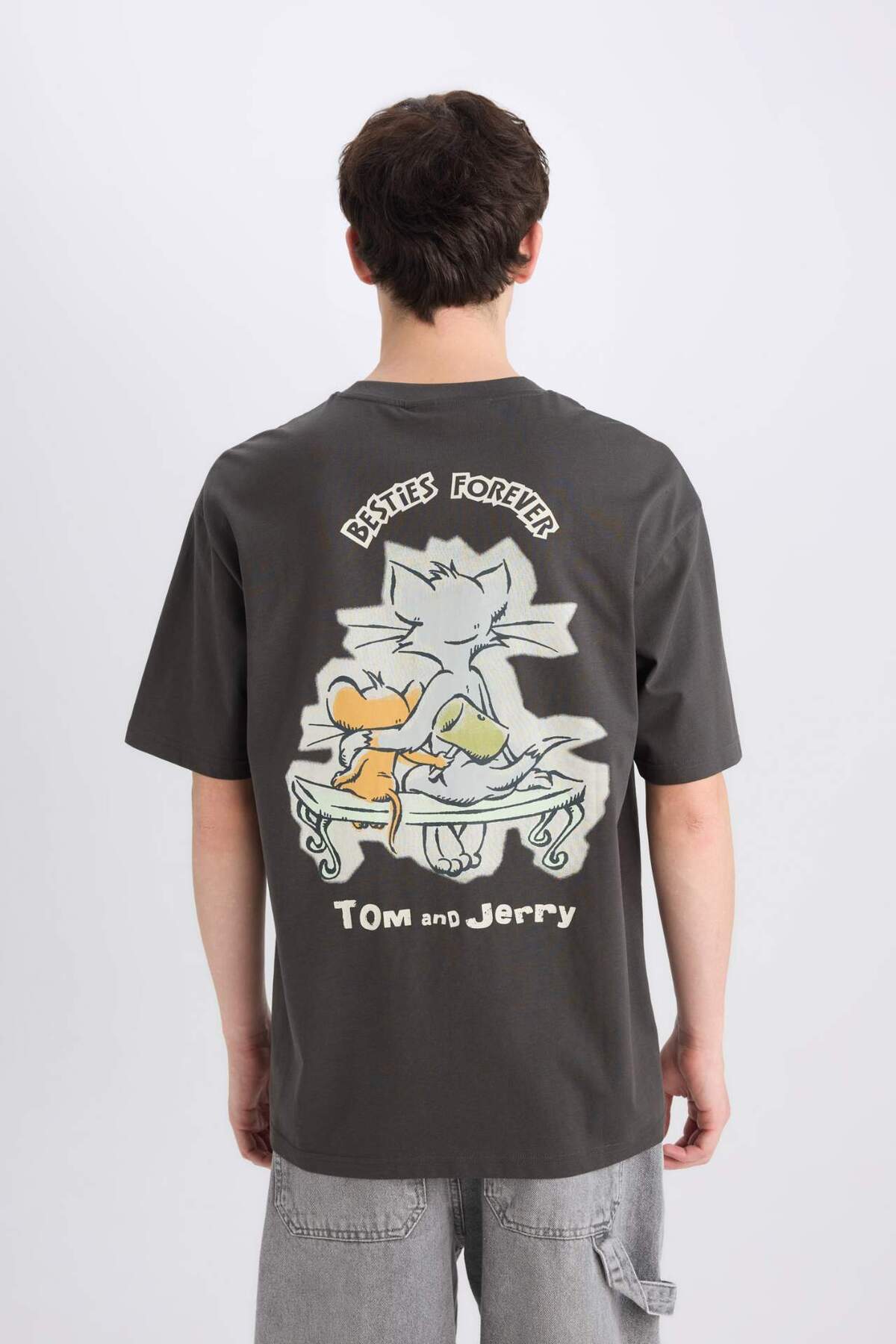 خرید اینترنتی تی شرت آستین کوتاه چاپ شده یقه ای باکسی تام و جری 100% پنبه ای E0617AX25SM برند دفاکتو Defacto اورجینال از DeFacto نمایندگی ترکیه
