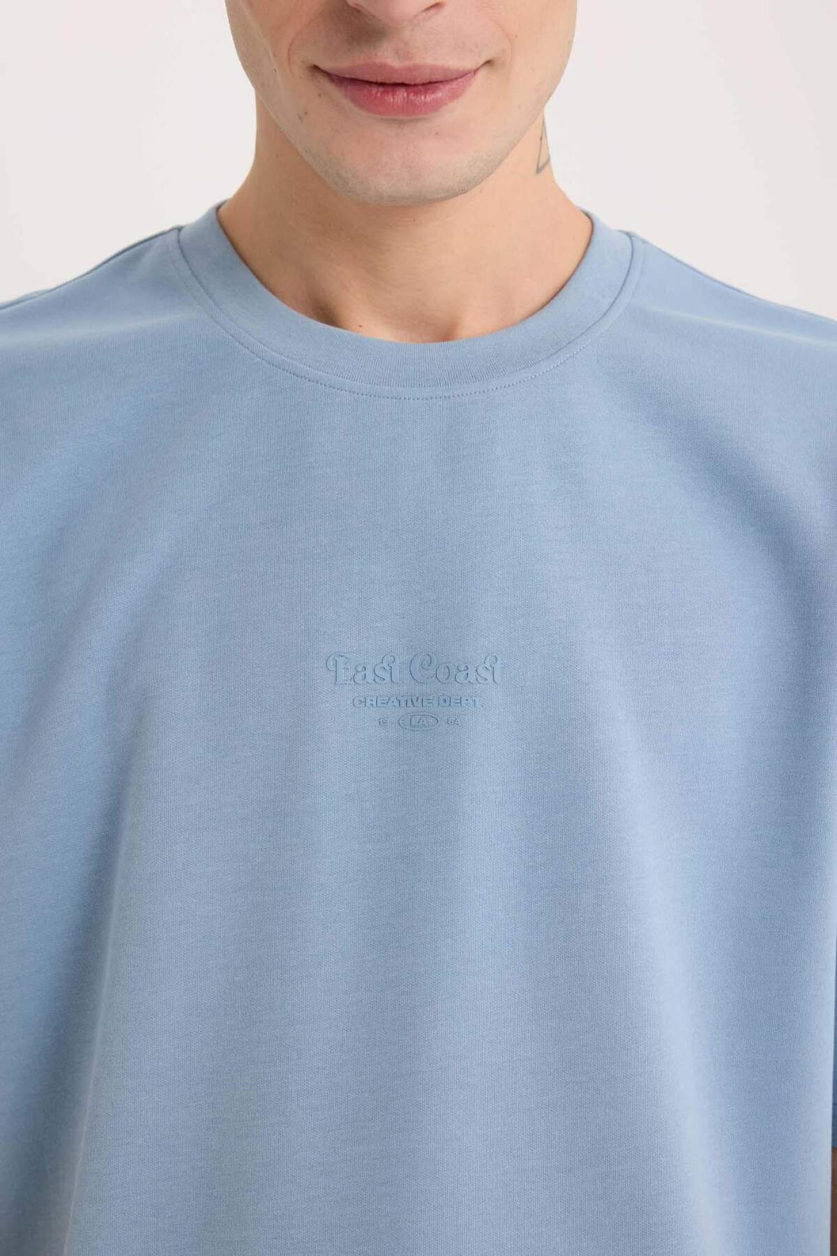 خرید اینترنتی تی شرت پارچه ای سنگین با یقه باکسی فیت غیر اتو تنفسی چاپ شده با آستین کوتاه D5518AX برند دفاکتو Defacto اورجینال از DeFacto نمایندگی ترکیه