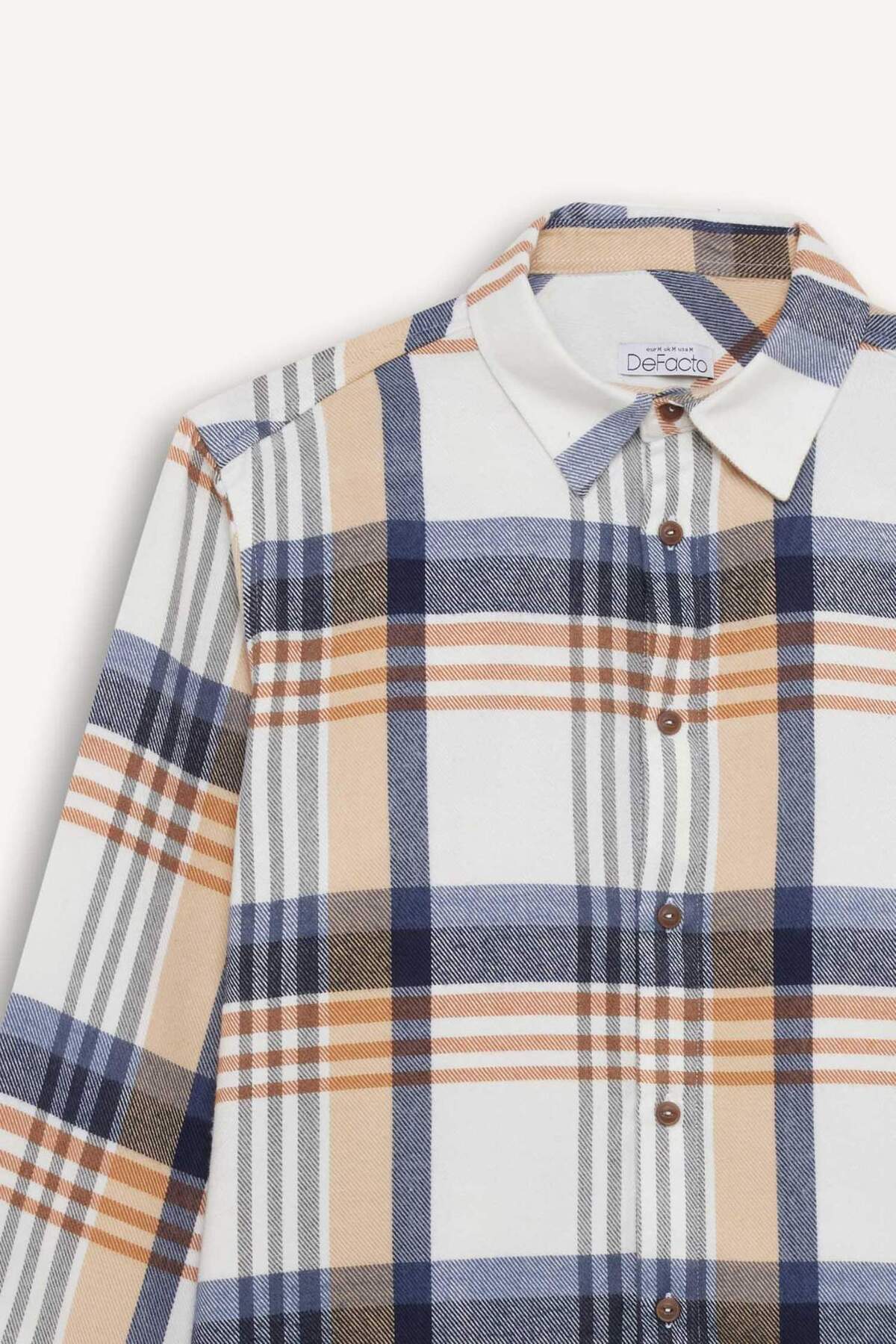 خرید اینترنتی پیراهن آستین بلند فلانل شطرنجی با یقه پولو رگولار D5835AX24AU برند دفاکتو Defacto اورجینال از DeFacto نمایندگی ترکیه