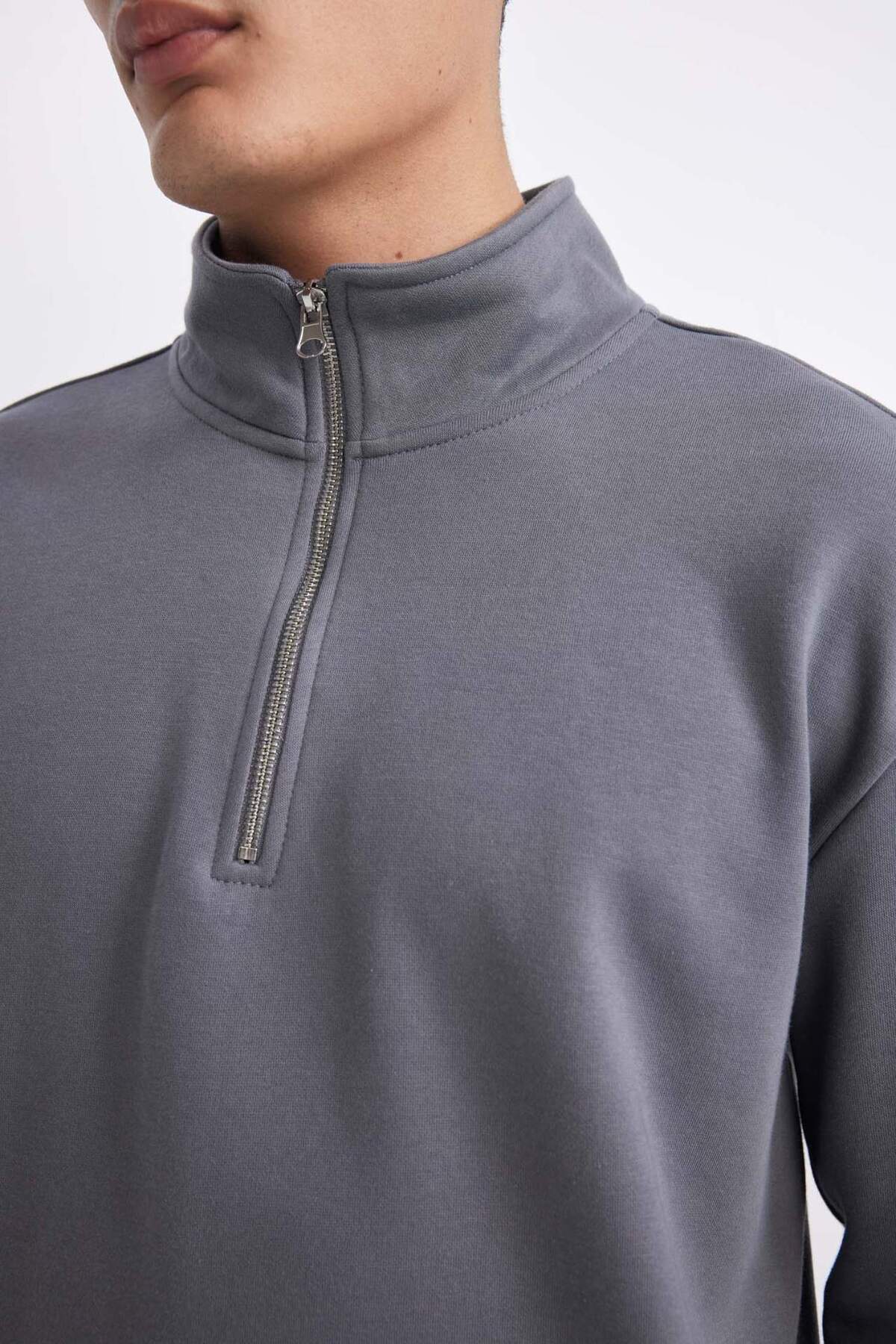 خرید اینترنتی سویشرت ساده ساده مدل Comfort Fit گاه به گاه با یقه پایه دار X7405AZ24SP برند دفاکتو Defacto اورجینال از DeFacto نمایندگی ترکیه
