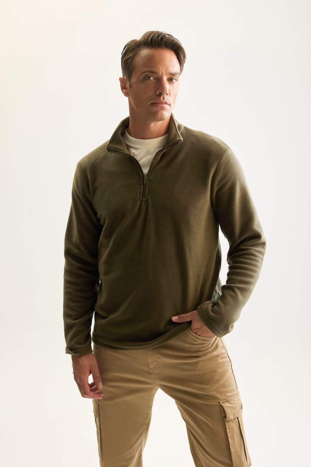خرید اینترنتی سویشرت زیپ دار زیپ دار یقه ایستاده خاکی ضد سرما و ضد سرما Y3996AZNS برند دفاکتو Defacto اورجینال از DeFacto نمایندگی ترکیه