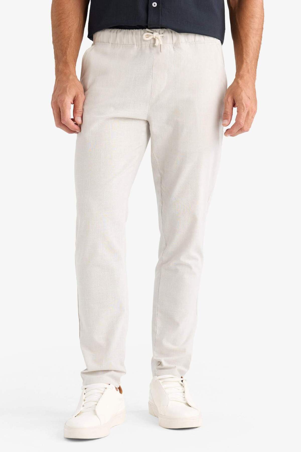 خرید اینترنتی شلوار تابستانی 100% کتان با ساق باریک، کمر کش الاستیک و جیب Z6475AZ25SP برند دفاکتو Defacto اورجینال از DeFacto نمایندگی ترکیه