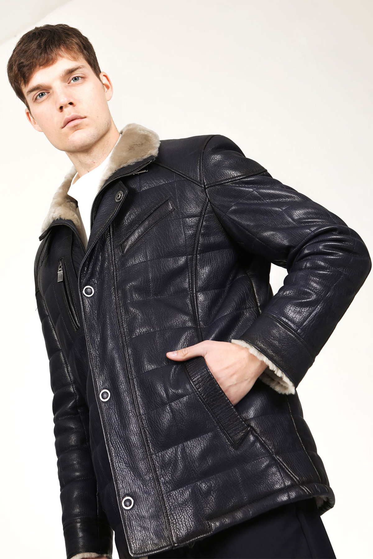 کاپشن چرم کلاسیک مردانه OTTOWA مدل Shearling