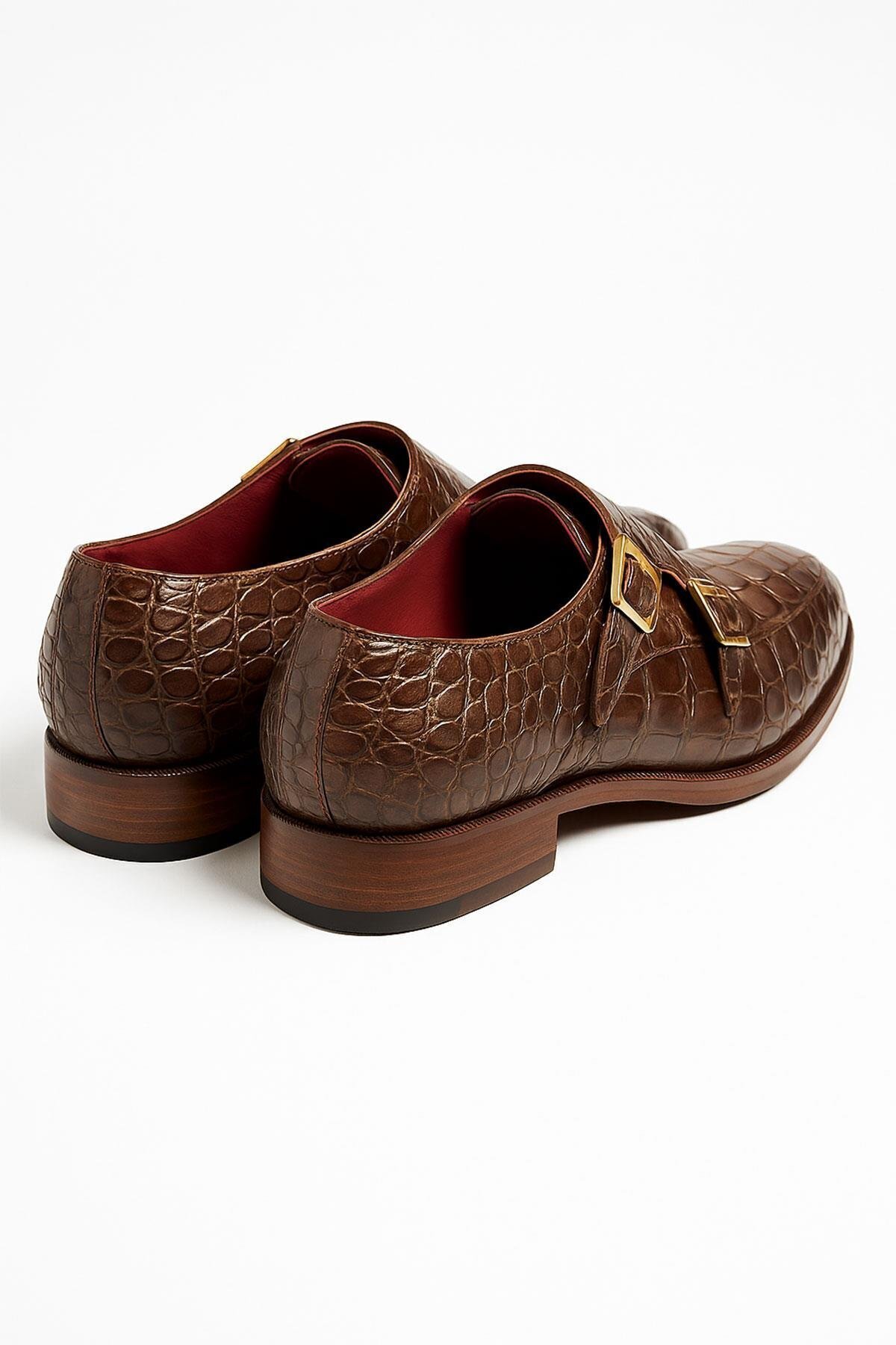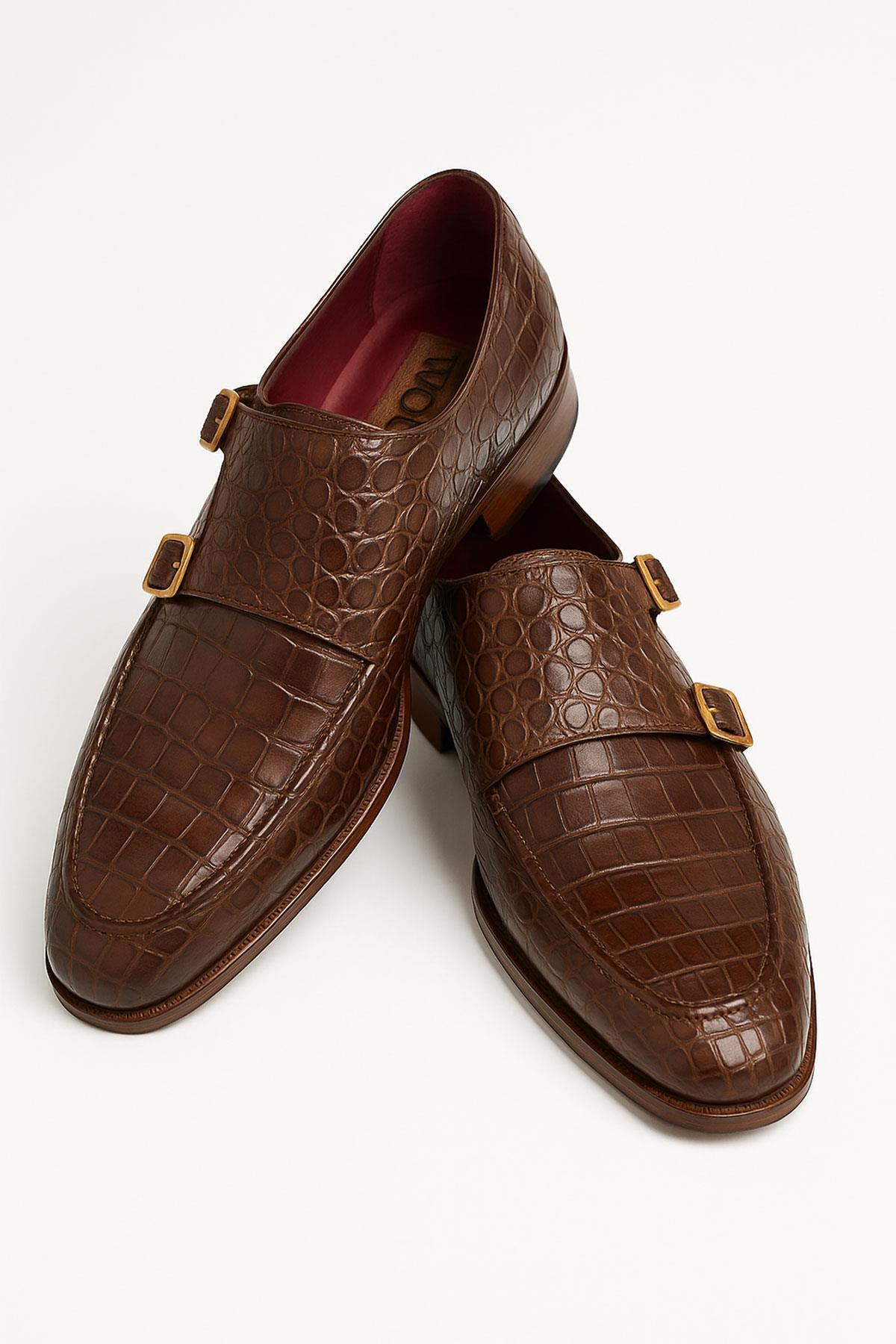خرید اینترنتی کفشهای چرم اصل دو سگکدار طرح کروکودیل قهوهای برند دریدریم Deriderim اورجینال از DERİDERİM نمایندگی ترکیه
