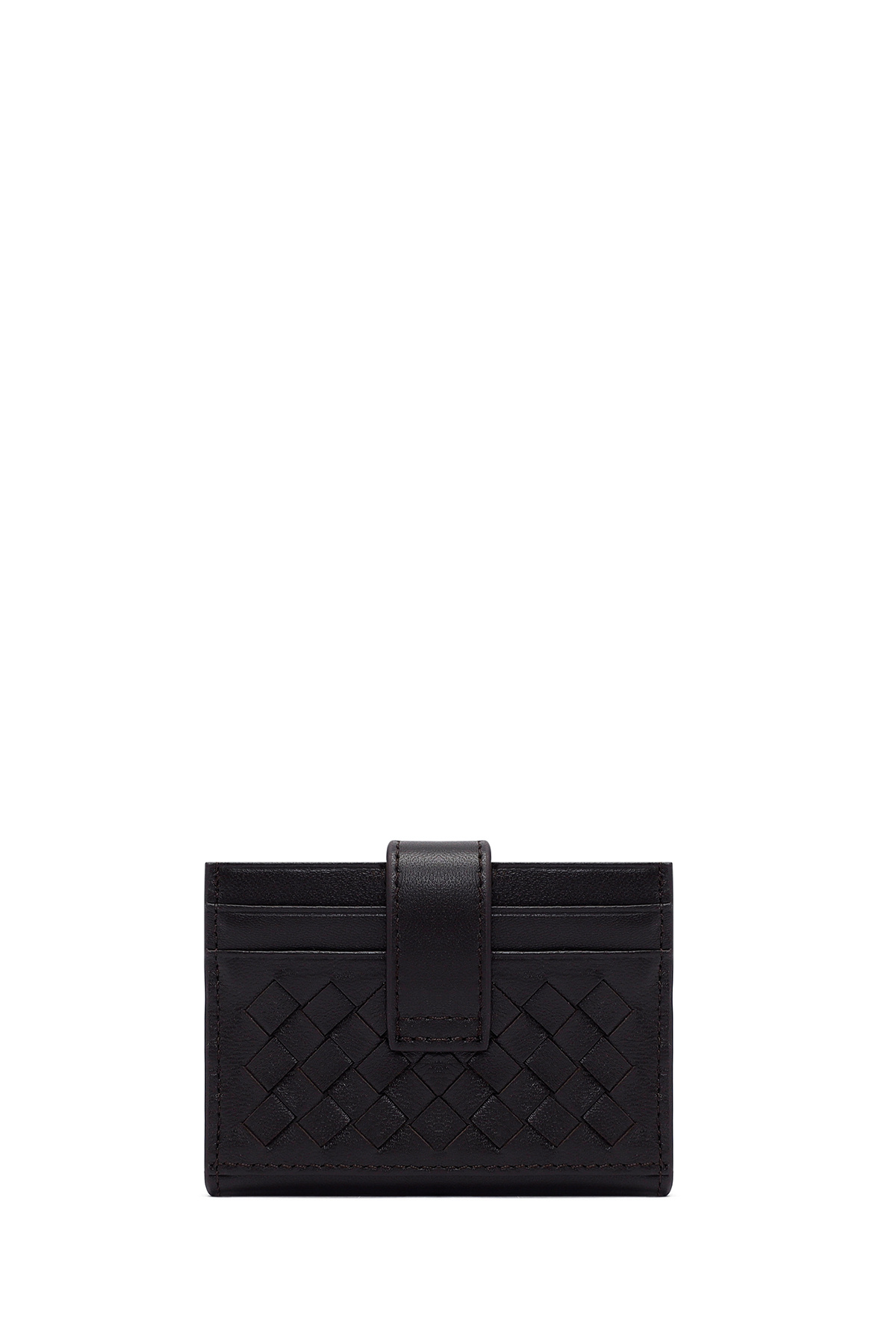 جا کارتی مردانه چرم قهوه ای بافته شده حاوی چرم گاوی است.