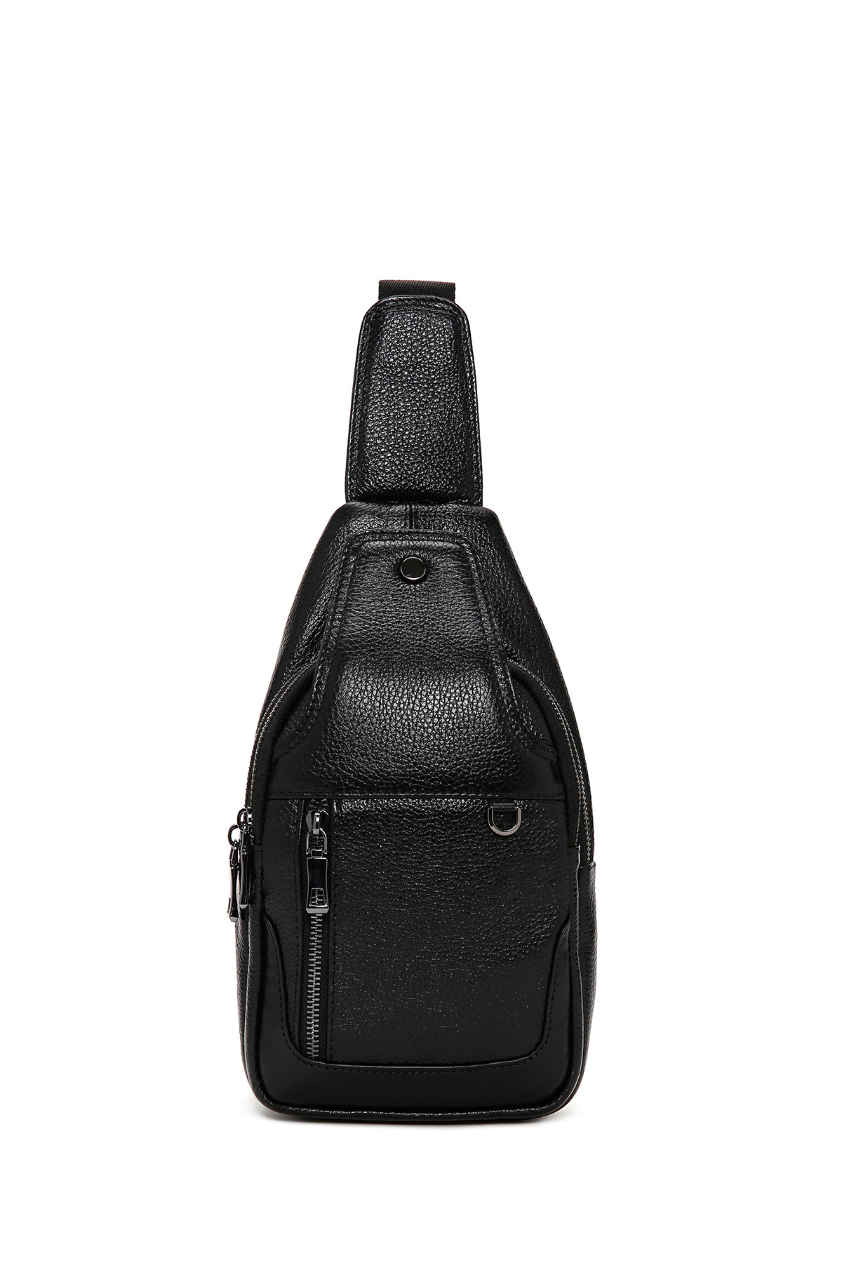 کیف رودوشی مردانه طرح چرم مشکی، از چرم گاوی ساخته شده است.